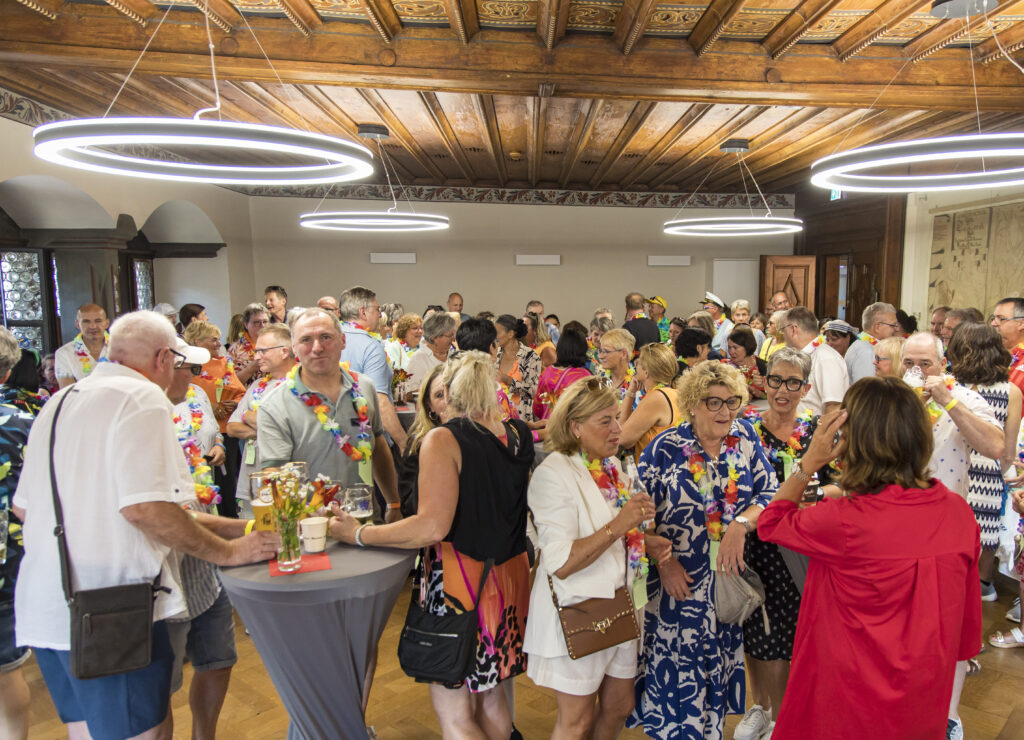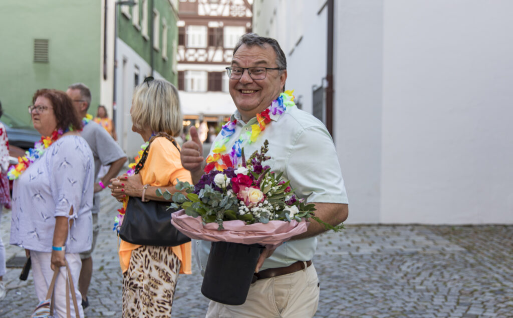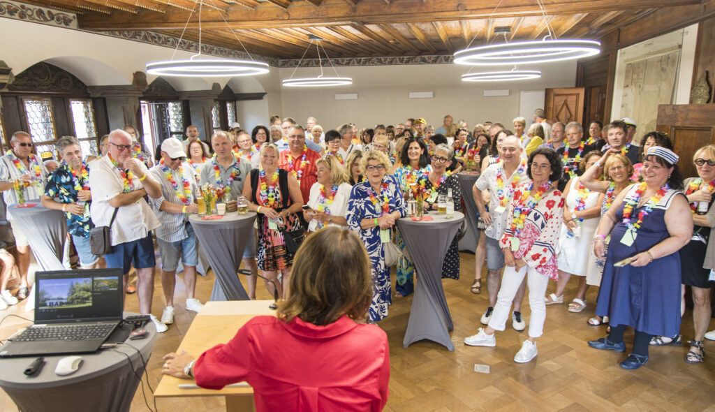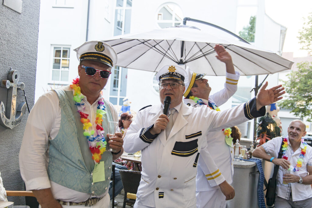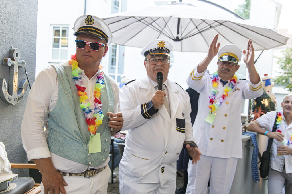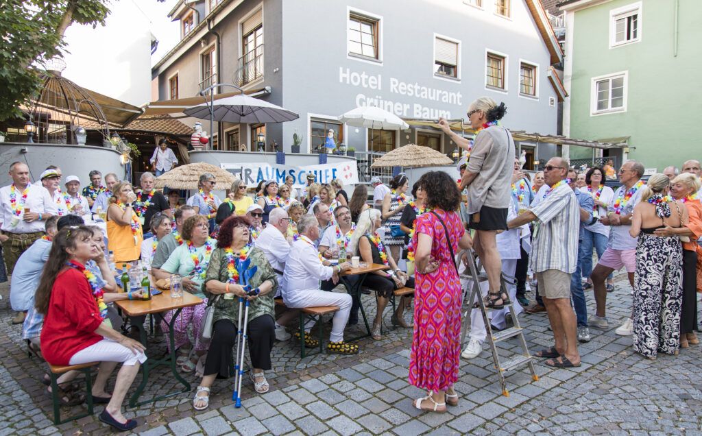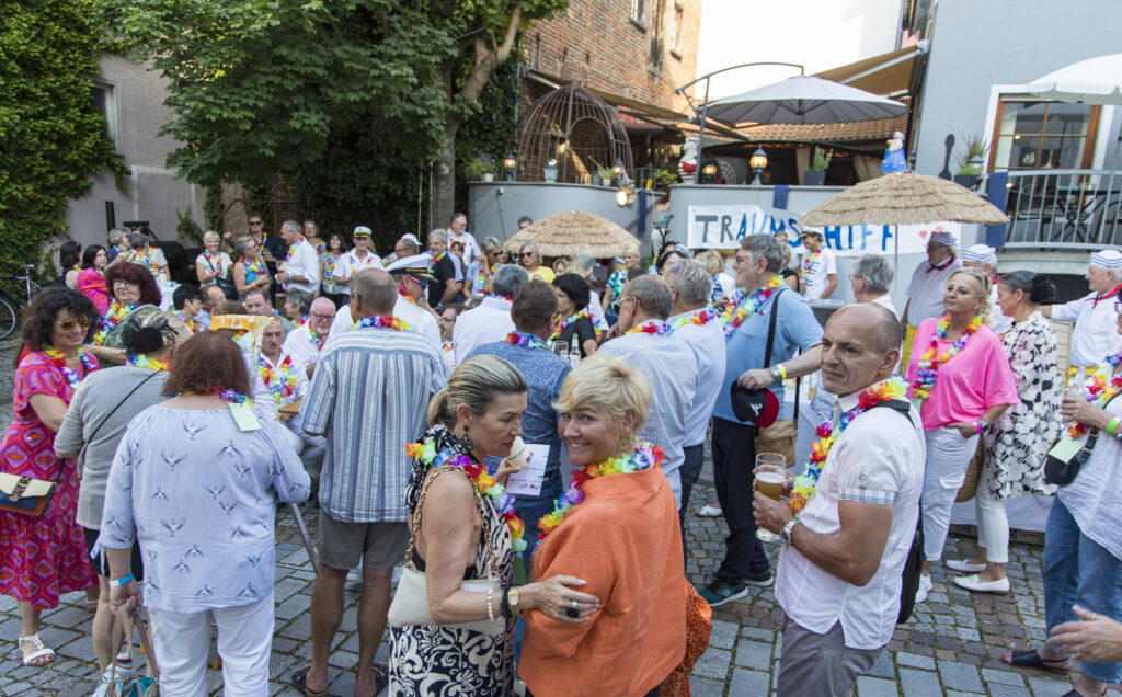 Bad Waldsee (gd) – Rund 100 Passagiere auf dem Traumschiff der MS „Jahrgänger 1963/64“ konnten die Crew-Mitglieder – Gabriela Dörflinger, Roland Haag, Hardy Neff, Kristin Konrad, Markus Leser, Sigi Schmidinger, Birgit Sonntag und Susanne Wirth – am Samstag, 20. Juli an Bord begrüßen. Nach dem Einschiffen wurden die Gäste zu einem Landausflug an drei Stationen um den Stadtsee eingeladen.