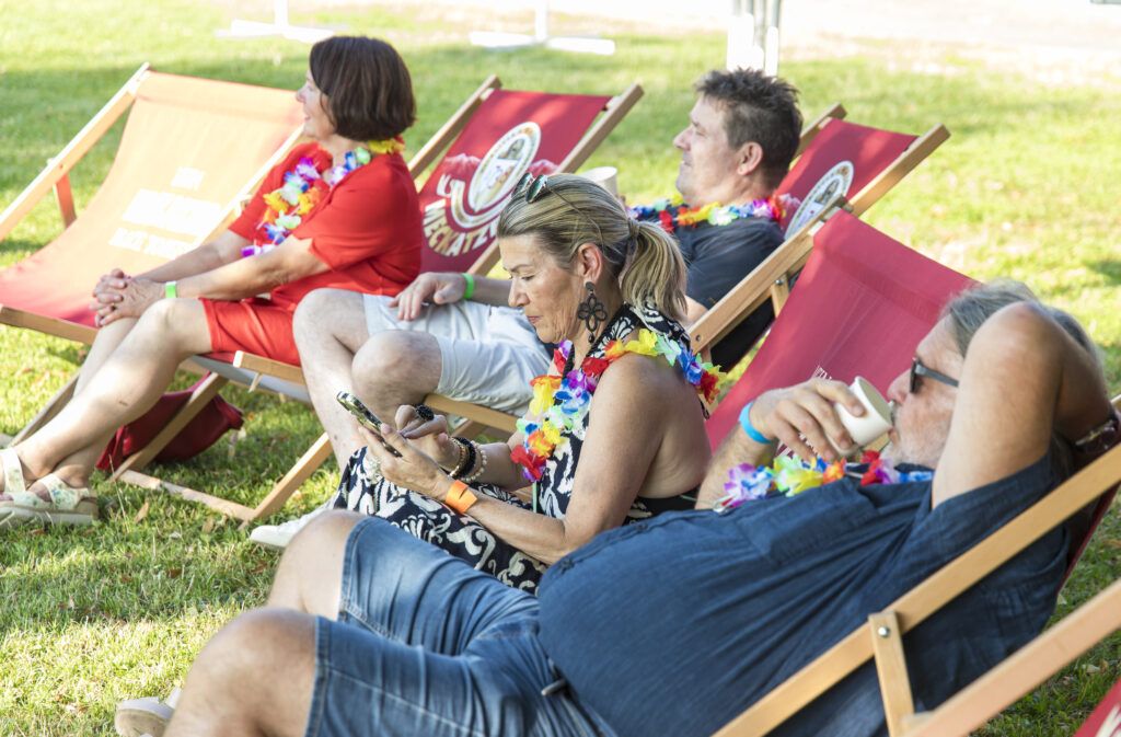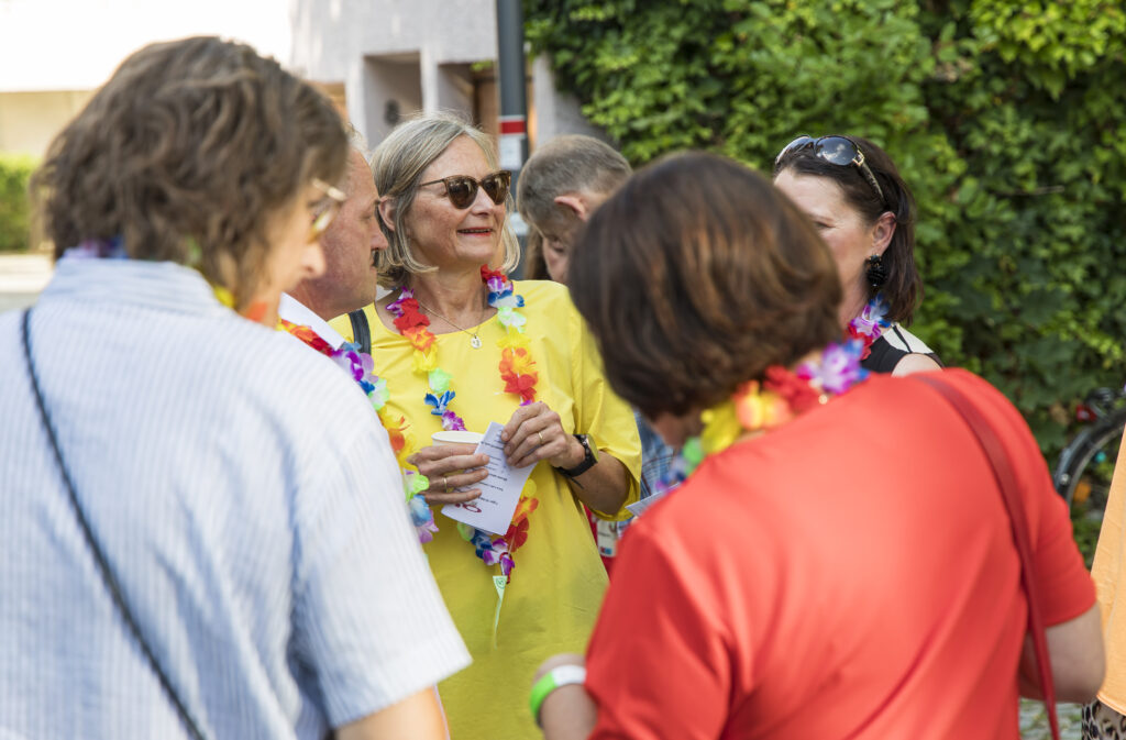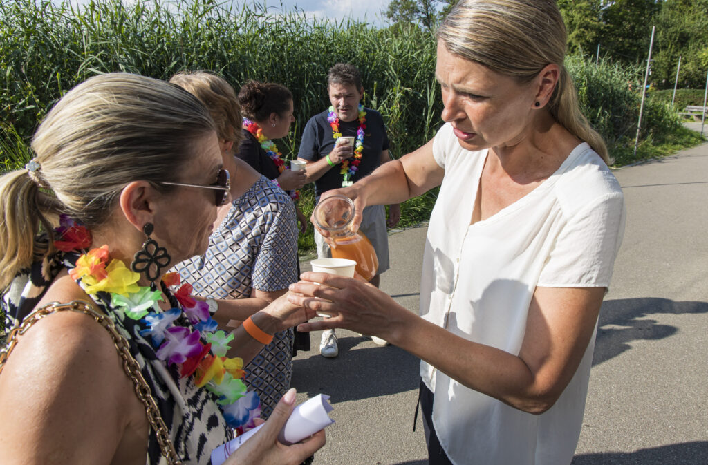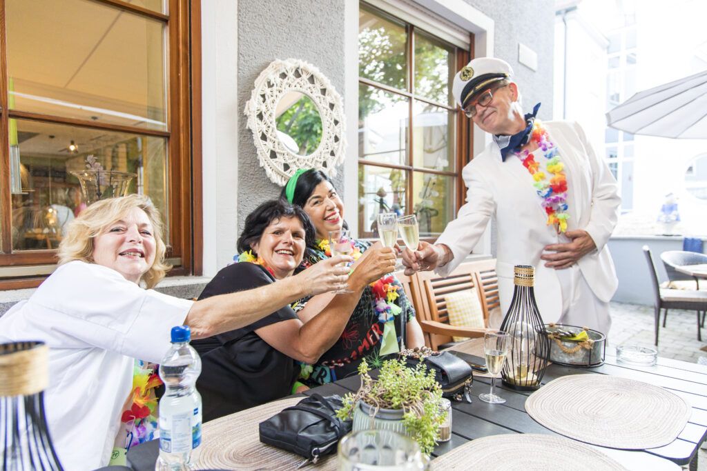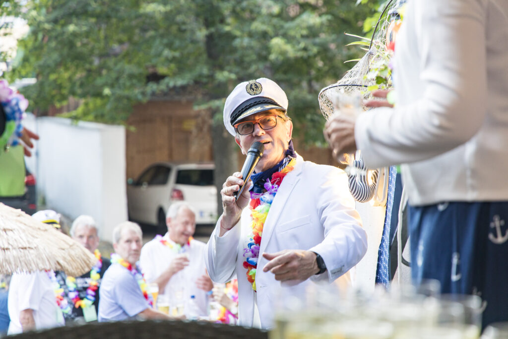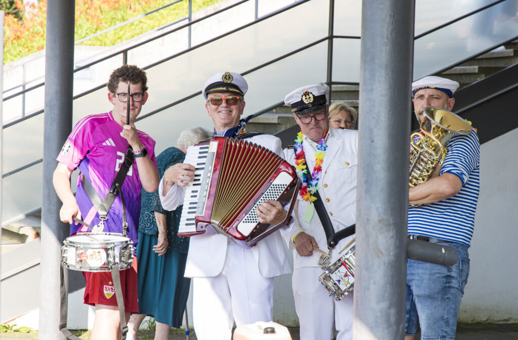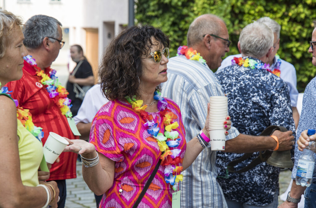Bad Waldsee (gd) – Rund 100 Passagiere auf dem Traumschiff der MS „Jahrgänger 1963/64“ konnten die Crew-Mitglieder – Gabriela Dörflinger, Roland Haag, Hardy Neff, Kristin Konrad, Markus Leser, Sigi Schmidinger, Birgit Sonntag und Susanne Wirth – am Samstag, 20. Juli an Bord begrüßen. Nach dem Einschiffen wurden die Gäste zu einem Landausflug an drei Stationen um den Stadtsee eingeladen.
