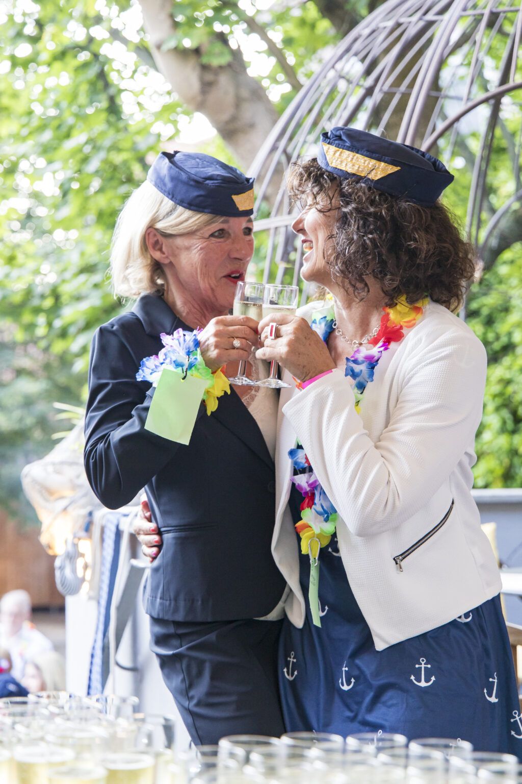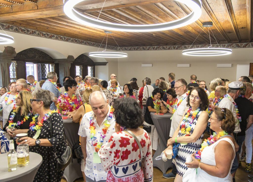 Bei allen Programmpunkten gab es, nicht nur wegen der großen Sommerhitze, Getränke zur Erfrischung. Anschließend ging es zum Gruppenfoto vor dem Rathaus. Nach dem einstündigen Landausflug ging es wieder an Bord und die Gäste wurden von der Crew mit einem Sektempfang, in das umfangreiche Programm an Bord inclusive Sicherheitsmaßnamen eingewiesen. So konnten die „Leinen“ für das Traumschiff losgelegt werden und die Babyboomer feierten bis spät in die Nacht ein geniales und traumhaftes Fest.