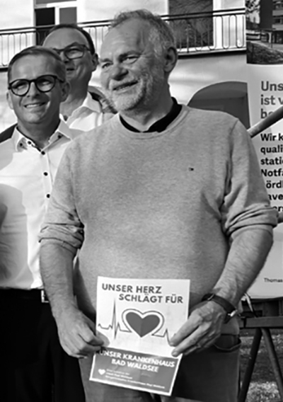 Zum Kampf ums Krankenhaus haben wir Thomas Bertele, einen der Vorkämpfer der stadtweiten Protestbewegung, um ein Wort mit Blick auf seinen Mitstreiter Franz Daiber gebeten. Bertele schreibt: „Er war ein Kämpfer der ersten Stunde. In Sachen Waldseer Krankenhaus war ihm nichts zu viel und er scheute bei vielen Besprechungen mit der Politik und diversen Geschäftsleitungen nie davor zurück, unbequeme Fragen zu stellen. Jeden noch so kleinen Strohhalm für den Erhalt unseres Hauses hat er aufgenommen und sei es noch so unwahrscheinlich gewesen, damit etwas zu erreichen. Seine Verlässlichkeit, seine Beharrlichkeit und sein Wissen um die ganzen Themen im Gesundheitssektor generell, aber auch in Sachen Krankenhausfinanzierung im Speziellen, waren unglaublich.“ Bertele schloss seine Mail mit den Worten: „Gerne würde ich Ihnen noch weitere Eigenschaften dieses außergewöhnlichen Menschen schildern, aber es fällt mir noch sehr schwer, über und nicht mit ihm zu sprechen. Sein Tod trifft mich und sehr viele Menschen in der Stadt sehr hart und völlig unvorbereitet.“