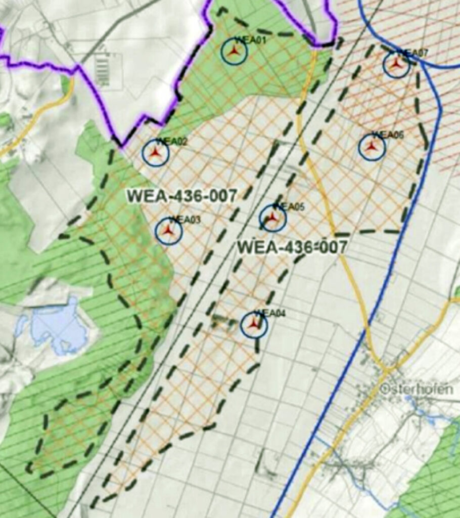 Das laut Regionalverband vorgesehene Vorranggebiet für Windkraft bei Osterhofen (WEA 436-007). Karte: RVBO