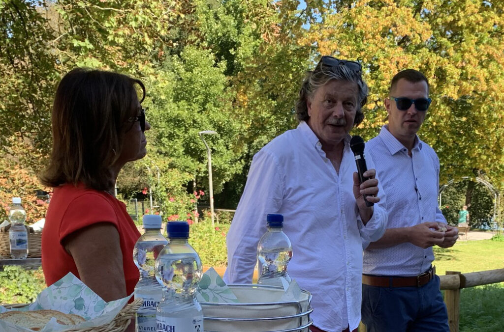 Im Klosterhof. Am Mikro Florian Becker.