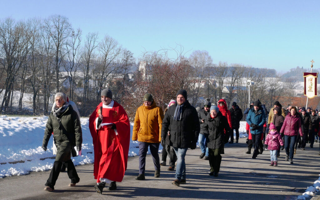 Haisterkirch – Am Sebastianstag (20. Januar) hatten sich Hunderte von Menschen aufgemacht, um dem Festgottesdienst in der Haisterkircher Pfarrkirche und der anschließenden Prozession hinauf nach St. Sebastian beizuwohnen. Etliche Gruppen – kleine und große – aus dem südlichen Kreis Biberach, dem Schussental, vor allem aus den Seelsorgeeinheiten Bad Waldsee, Bad Wurzach und Oberes Achtal pilgerten schon Tage zuvor hinauf zur Kapelle, um dort zu beten und um den Beistand des Heiligen bei Gott zu erbitten.