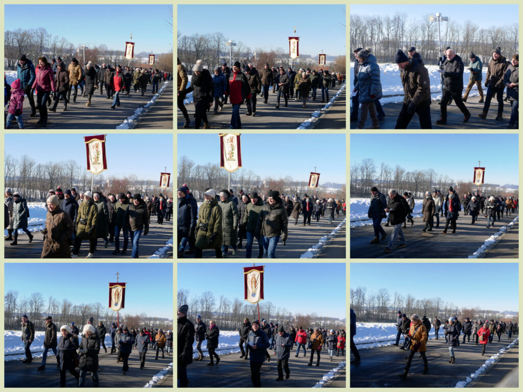 Erfreut zeigten sich alle, die den Hauptweg (Stationenweg) von Haisterkirch aus hinaufgegangen sind, denn die Stadt Bad Waldsee hat diesen noch rechtzeitig vor dem Sebastiansfest perfekt herrichten lassen. Auch der andere Hauptweg von Haidgau her war gut begehbar, so auch für die Beterinnen und Beter aus Arnach unter traditioneller Führung von Hansjörg Schick.