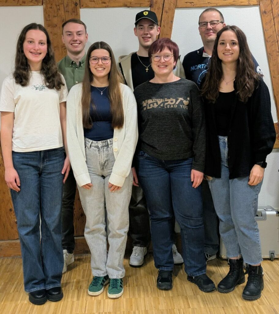 Die neue Vorstandschaft von links nach rechts: Beate Miller, Matthias Preiß, Lena Hepp, Tim Lemmle, Margit Spehn, Thomas Lemmle, Kristina Hepp