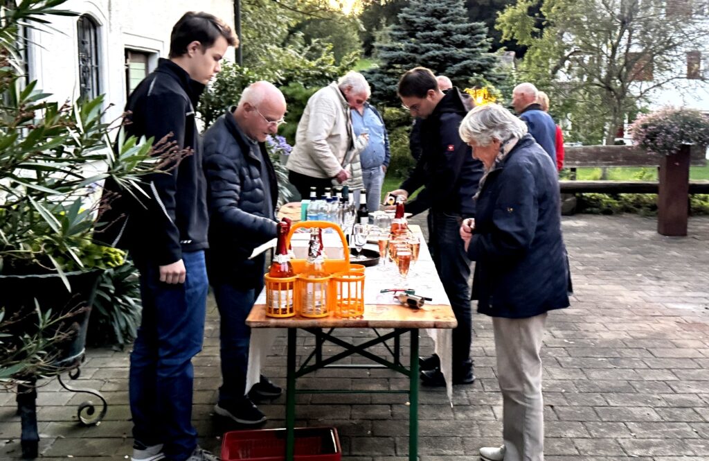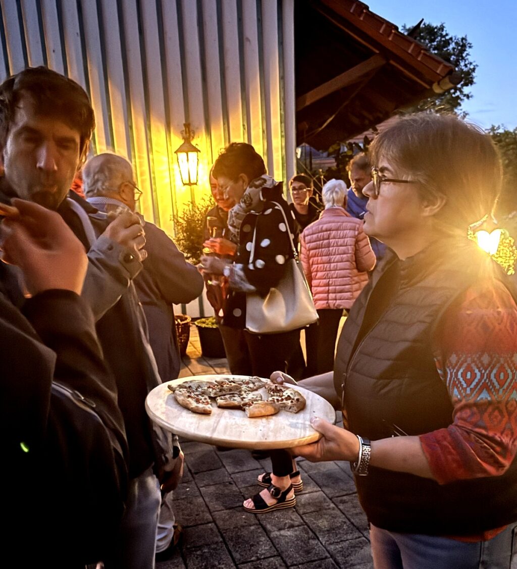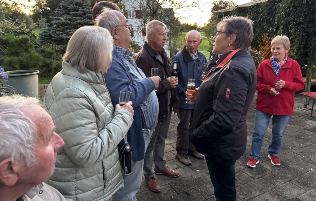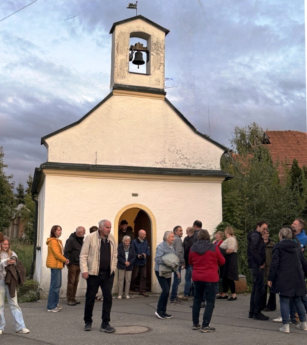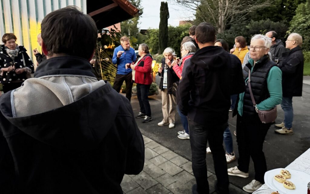 Nach dem Gottesdienst wurden die Gottesdienstbesucher zum schon traditionellen Festausklang bei  Familie Frick ins Areal ihres Hofguts –  nur wenige Schritte von der Kapelle entfernt – eingeladen. Ein Wärme spendendes, großes Schwedenfeuer, das Franz Frick angezündet hatte, war an dem kühlen Abend durchaus gefragt. In der blumen- und pflanzenreichen  Umgebung wurden die Gäste mit Getränken und gespendeten schmackhaften Happen von Monika Frick und Rita Fink verwöhnt. Erwin Fink, der bei der Gästebetreuung auch mithalf, konnte auf Geldspendenreste verweisen, mit denen die Auslagen für die Getränke finanziert werden konnten. Lobes- und Dankesworte wurden beim Patroziniums-Nachfest zahlreich ausgesprochen und dazu der Wunsch geäußert, dass man sich hoffentlich auch zukünftig hier wieder begegnen darf.