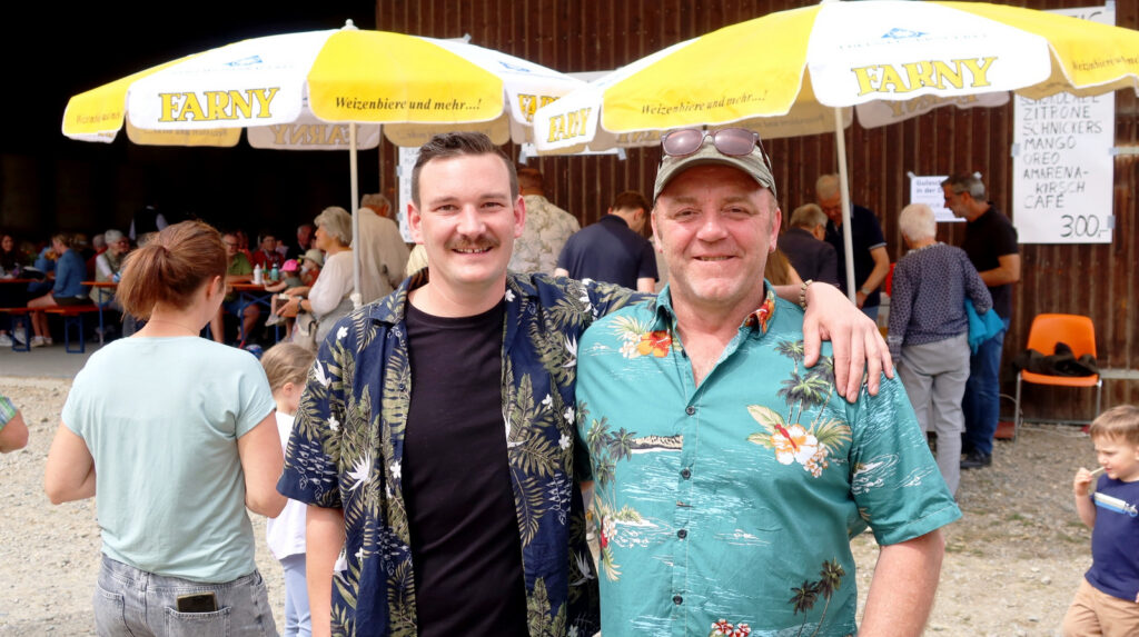 Das Vorstandsteam des Fördervereins „Kapelle Osterhofen“ war erneut im Dauereinsatz. So bemühten sich Markus Schmid (1. Vorsitzender) und Franz Maucher (Vorstandsmitglied) gespendete Dosen mit Gulaschsuppen und auch Q-Eis in Bechern an Frau und Mann und Kinder zu bringen.