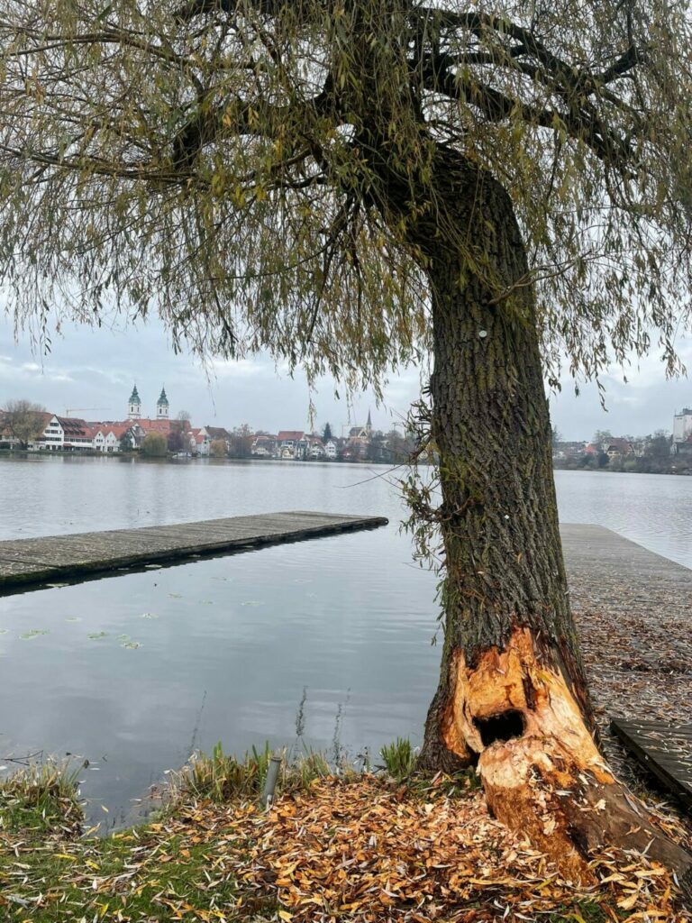 Bad Waldsee – Am Stadtsee wurde an einer Weide ein erheblicher Biberschaden festgestellt. Der Stamm ist so stark beschädigt, dass die Stand- und Bruchsicherheit nicht mehr gewährleistet werden kann. Nach Einschätzung der zuständigen Mitarbeiter der Stadt ist eine Fällung des Baumes daher unumgänglich. Zur Sicherheit wurden die angrenzenden Stege vorsorglich mit Warnbaken abgesperrt und dürfen bis auf Weiteres nicht betreten werden. Die Fällung der Weide durch die Mitarbeiter der Grünpflege wird zeitnah erfolgen, um mögliche Gefahren für Passantinnen und Passanten zu vermeiden.