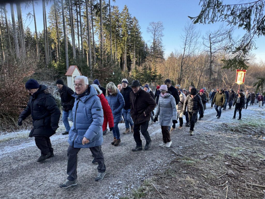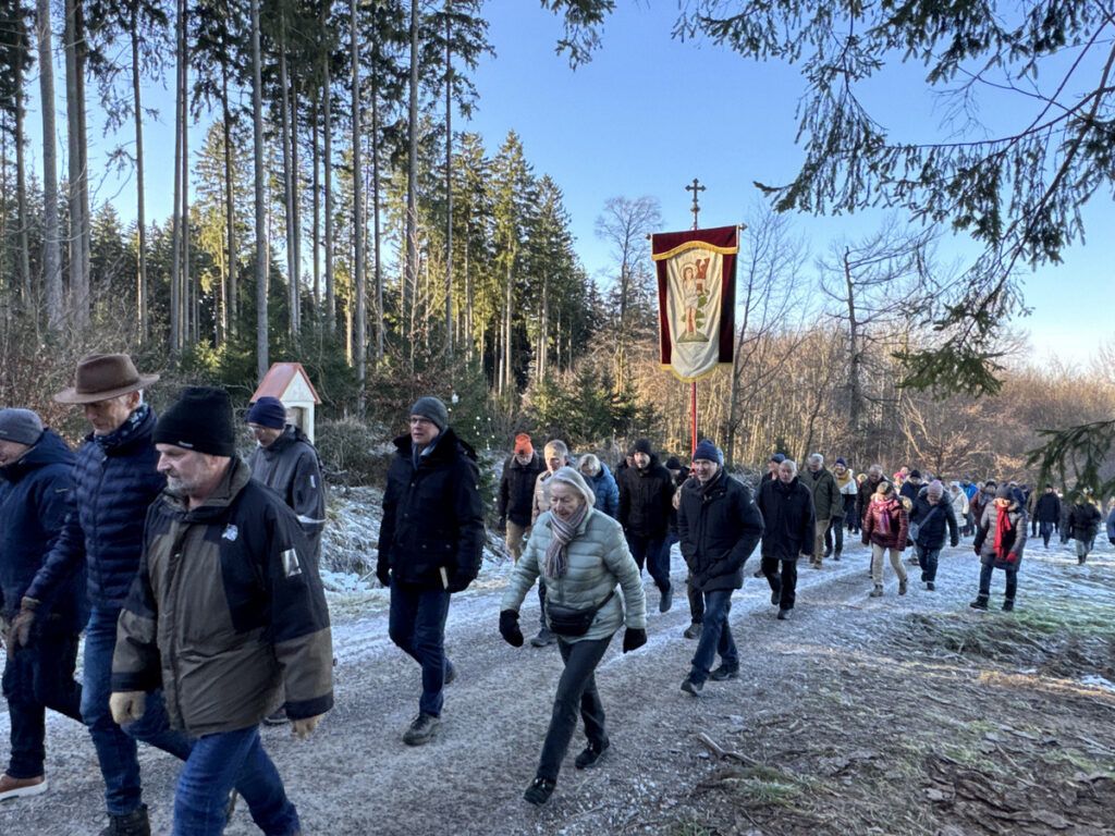 Voran die Ministranten mit Kreuz und Fahnen, ging eine große Schar von Gläubigen am 20. Januar den Berg hinauf zur im Wald oberhalb von Haisterkirch gelegenen Sebastianskapelle.