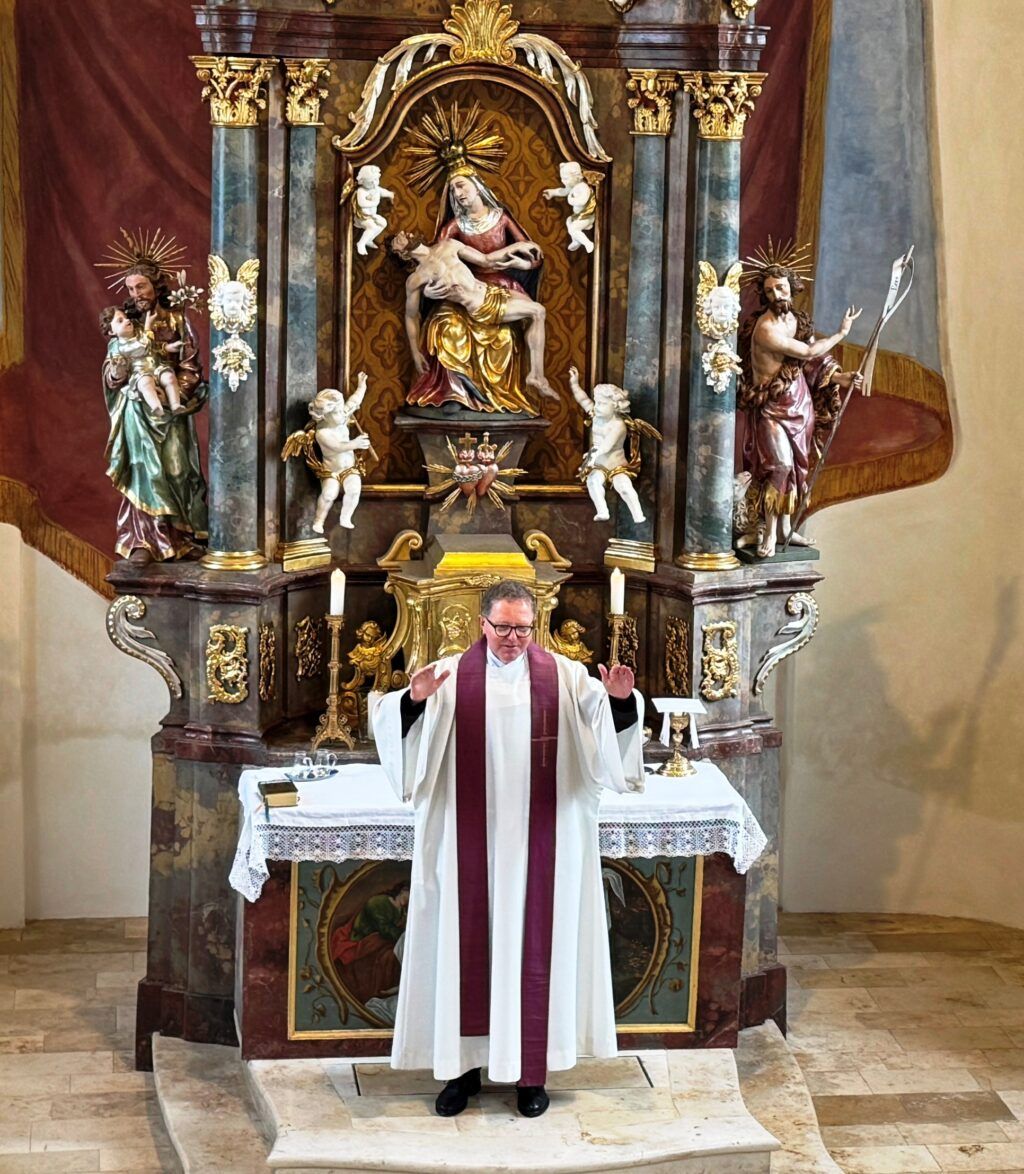 Für die feine musikalische Umrahmung während der Eucharistiefeier sorgte („Josie“) Joseph Kübler am E-Piano. Er war extra von München zum Bruderschaftstag hergekommen. Anhaltender Applaus wurde gespendet, als sich Pfarrer Thomas Bucher bei der Mesnerin Claudia Waibel und bei Joseph Kübler für deren treue Dienste bedankte.