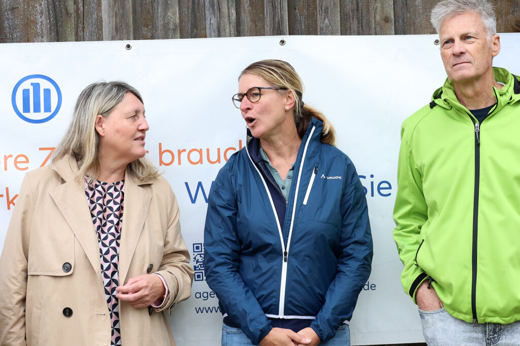 Bürgermeisterin Alexandra Scherer im Gespräch mit Simone Waizenegger vom Reit- und Fahrverein Hauerz. Rechts Ortsvorsteher Kurt Miller.