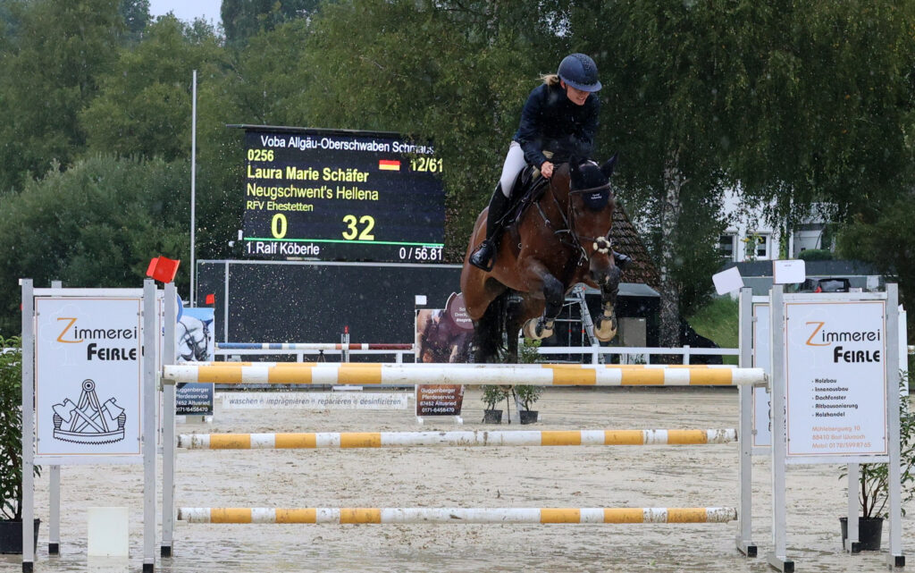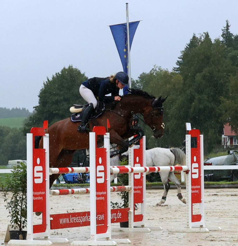 Der Reitverein Hauerz präsentierte eine großzügige, gut gepflegte Anlage mit vielen freiwilligen Helfern. Reitsportlerinnen und Reitsportler aus dem näheren und weiteren Umfeld zeigten sich belastbar – Regen hielt weder Pferd noch Reiter auf. Der Sandplatz erwies sich auch bei Nässe als griffig, was einen reibungslosen Ablauf der Turnierveranstaltung ermöglichte. Die Bürgermeisterin war beeindruckt von den gezeigten Leistungen des Vereins und führte Gespräche mit Vorstand Josef Dobler jun., der zweiten Vorständin Simone Waizenegger, Ortsvorsteher Kurt Miller und CDU-Fraktionsvorsitzender Gemeinderätin Emina Wiest.