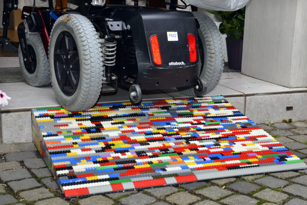 Unterstützt von der Aktion Mensch im Rahmen der Förderinitiative#1Barriereweniger, entstanden in den letzten Wochen Rampen aus LEGO®- und DUPLO®-Steinen, die Menschen mit Mobilitätseinschränkungen den Zugang zu bislang nicht barrierefreien Geschäften ermöglichen.