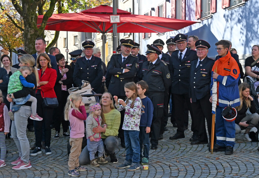 Bad Waldsee – Der Kirbemontag in Bad Waldsee steht traditionell im Zeichen der Floriansjünger, die auch in diesem Jahr wieder mit Können und Gerät vor der Bürgerschaft glänzen konnten. Das Wetter war prächtig und es hatten sich viele Zuschauer, darunter auch Bürgermeisterin Monika Ludy, Alt-Bürgermeister Rudolf Forcher und „Feuerwehrmutter“ Sonja Wild, eingefunden. Natürlich war auch OB Henne vor Ort.