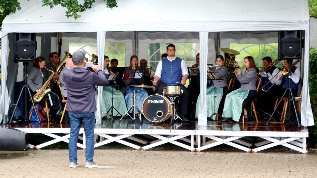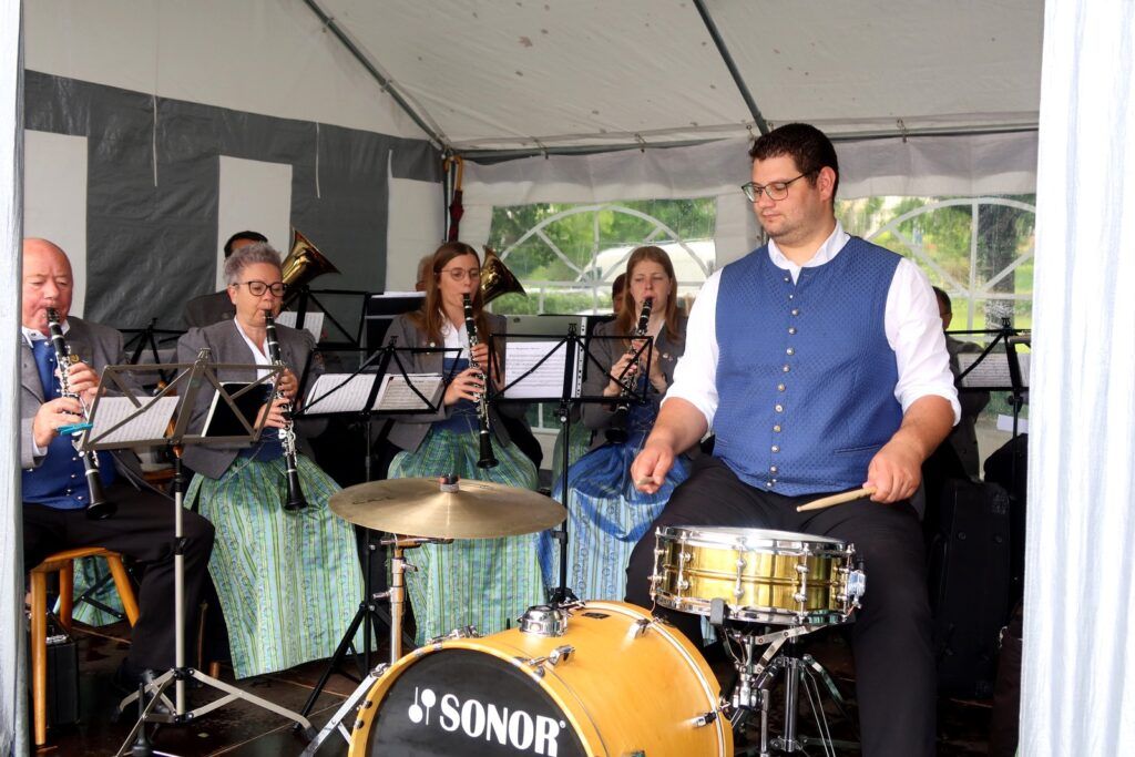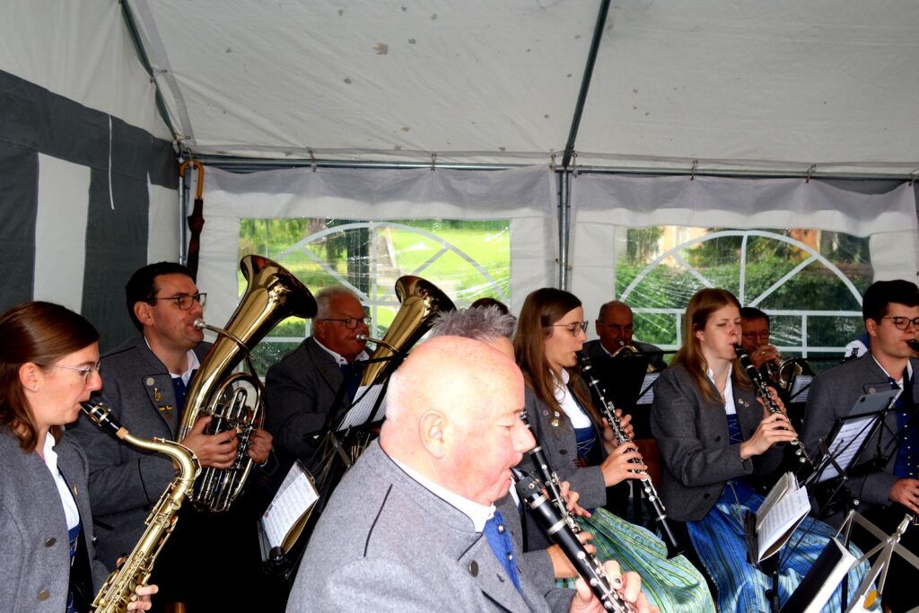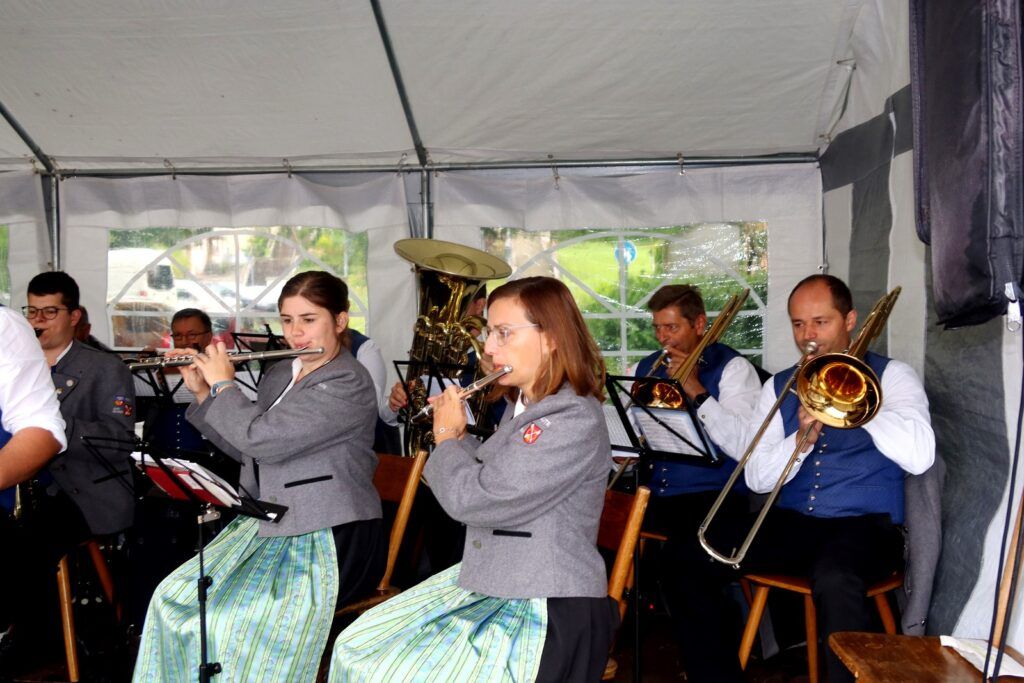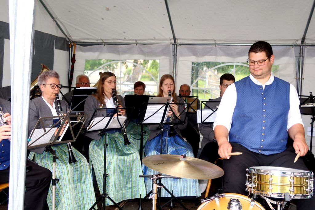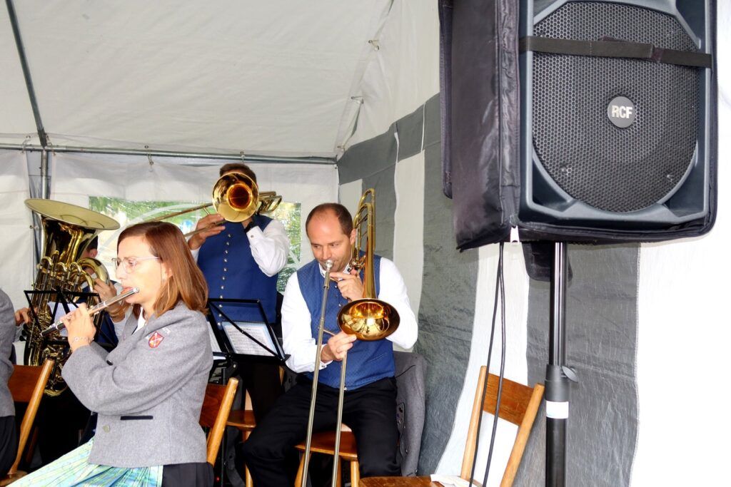 Nach dem Gottesdienst hörte es auf zu regnen, so dass all die bekannten Aktionen, die zum Brunnenfestverlauf am Sonntag gehören, ungetrübt vom Wetter durchgeführt werden konnten. Der Musikverein Reute-Gaisbeuren sorgte mit gefälliger Blasmusik für ein sehr gelungenes Frühschoppenkonzert.