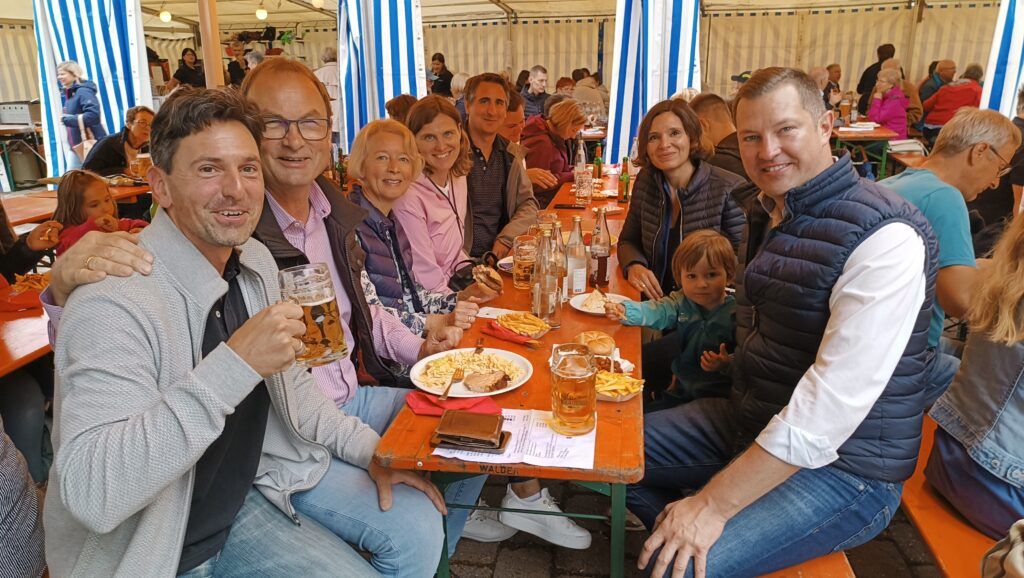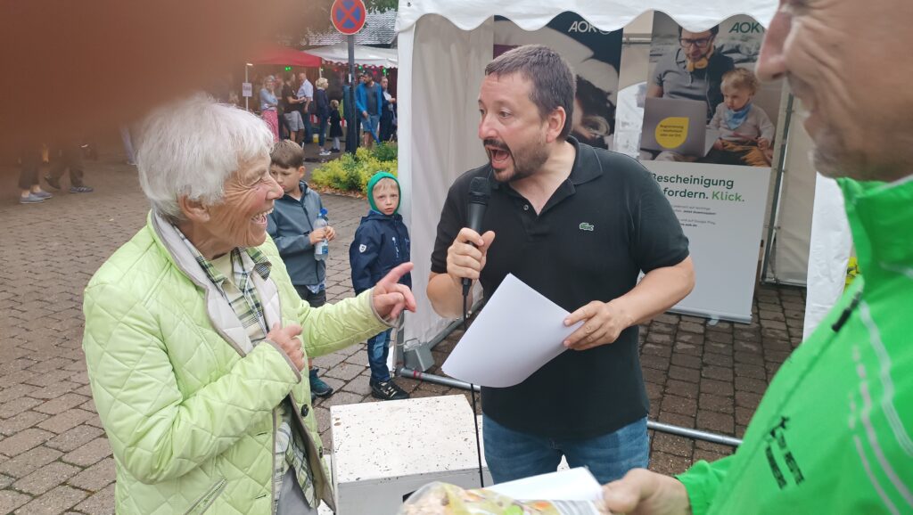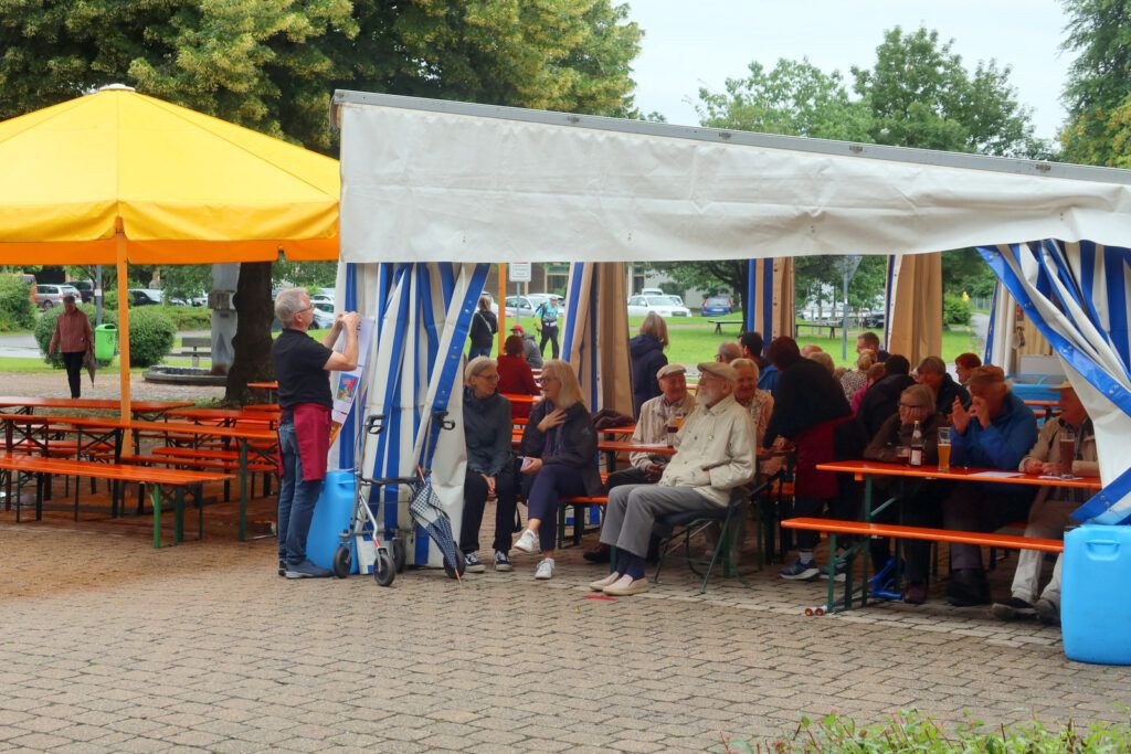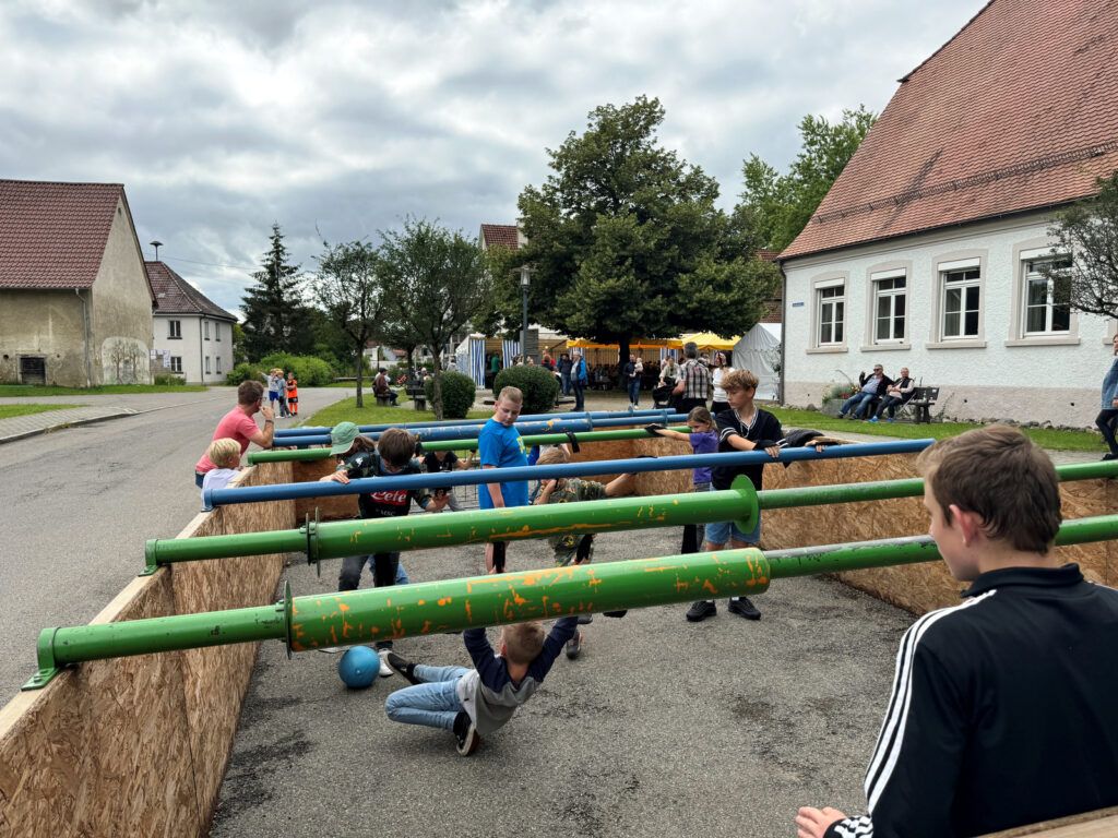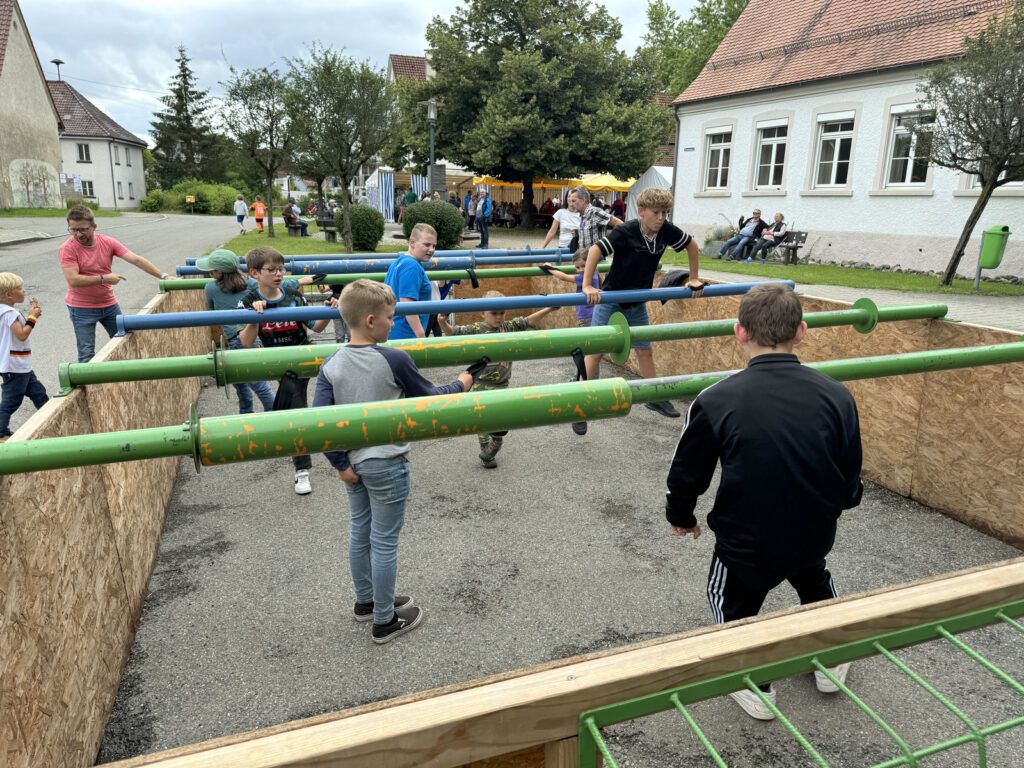 Die Gäste genossen das reichhaltige und schmackhafte Essensangebot. Das „Menschenkickerturnier“ für Vereins- und Hobbyteams gehört traditionell zum Festgeschehen wie auch der Kinderflohmarkt, das Zwergencafé , das Boule spielen, die Märchenzeit mit Dora Dipfele und der Auftritt des Singkreises, alles unter der Obhut der Solidarischen Gemeinde.