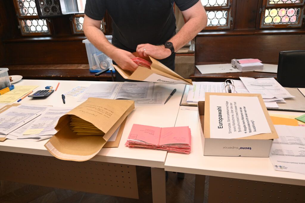 Bad Waldsee – Die Rathaus-Uhr schlägt sechs Mal. Eine Wahlhelferin bringt die letzten beiden Briefwahlkuverts aus dem Rathaus-Briefkasten. Ein weiterer nimmt den Brieföffner. Schlitzt die Kuverts auf. Prüft den Wahlschein. Alles ok. Die Wahlbriefumschläge kommen in die passenden Wahlurnen. Noch sind die Urnen verschlossen.