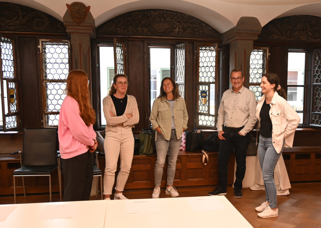 Ich bin im Sitzungssaal des historischen Bad Waldseer Rathauses. Hier werden die Briefwahlunterlagen ausgezählt.