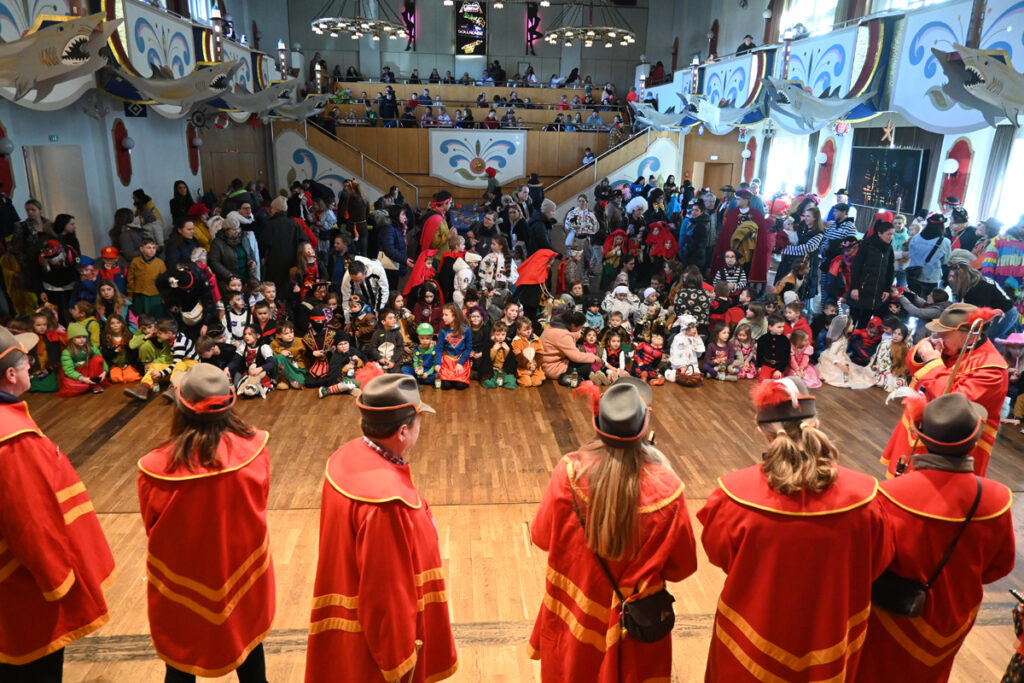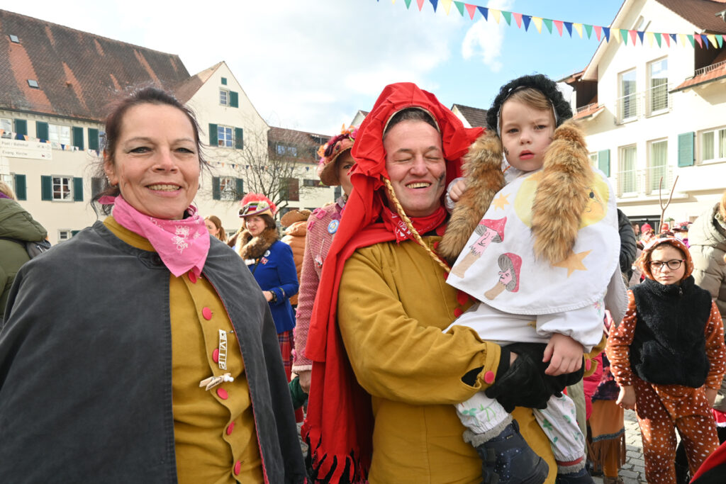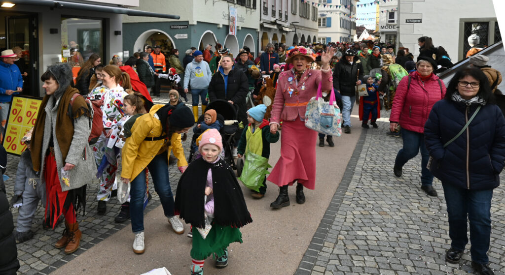 Der Kanonier lässt die Kanone krachen, die Stadtkapelle spielt den Narrenmarsch, etwas chaotisch, aber mit viel Freude wälzt sich der Umzug mit Kind und Kegel durch die Straßen, über die Hochstatt, Grabenmühle in die Stadthalle. Hier erwartet die Kinder ein buntes Programm. Angefeuert von Narrenmoderator Andi Hepp erreicht die Stimmung bald den Siedepunkt.