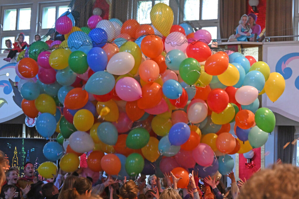 Nach den Bonbons regnete es bunte Luftballons auf die Kinder herab und wieder einmal konnten die großen Mäschklerle die kleinen verzaubern.