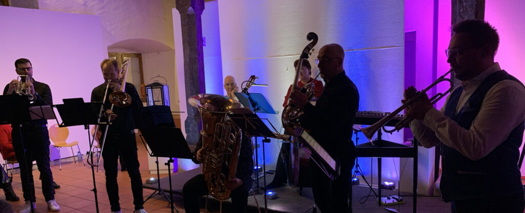 Hochverdienter Schlussapplaus bewog die Musiker zu zwei Zugaben: die Weihnachtsversion von „Java“ durch Salteris und das ergreifende „Feliz Navidad“ durch die Bläser. Endgültiger Abschluss war schließlich des gemeinsam gesungene „O Du Fröhliche“, begleitet von allen neun Musikern.
