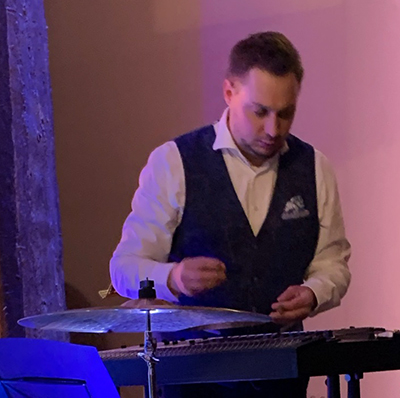 Die Gruppe „Salteris“ mit Severin Hänsler (Hackbrett und Moderation), Salome Hänsler (Violine), Regina Hänsler (Bass) und Georg Dahlmann (Gitarre) spielte zum Auftakt Satz eins des Winterkonzerts aus den „Vier Jahreszeiten“ von Antonio Vivaldi. Alle vier Instrumente, insbesondere Hackbrett und Violine, spielten rasante Läufe mit Sechzehntelnoten, auch unterstützt von Severin Hänslers Hi-Hat, womit auch eisige Stürme aufschienen. Auf die besondere Atmosphäre war nun perfekt und fulminant eingestimmt, was Hänsler mit einem Bild leisen und wilden Schneerieselns zusätzlich erklärte. Das Winterkonzert bilde schließlich einen roten Faden durch das gesamte Adventskonzert.