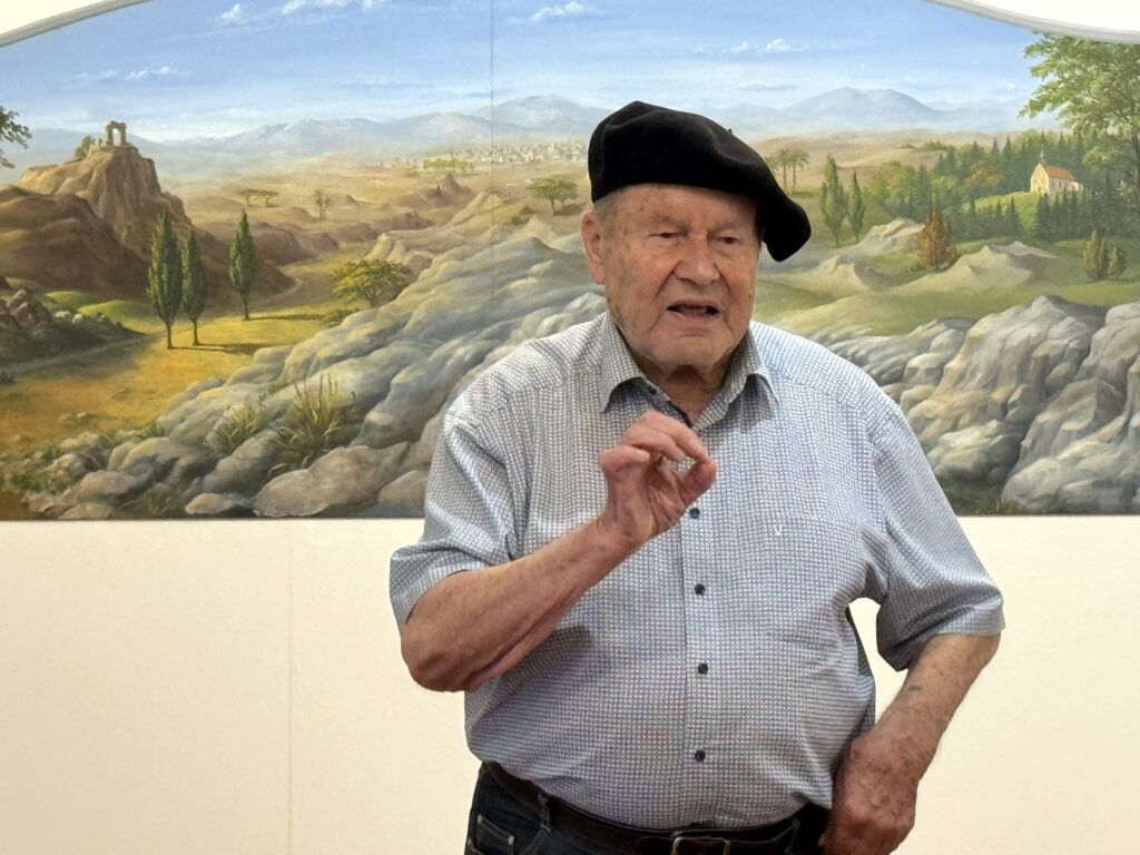 Die Fotos in der angehängten Galerie lassen erkennen, wie engagiert und lebendig der fitte Künstler, dem man 90 Lebensjahre überhaupt nicht anmerkt, seine hier ausgestellten Werke vorstellte. Ergänzend wurde mit Hilfe eines Bildschirms die Vielseitigkeit seines künstlerischen Schaffens sichtbar gemacht und vertieft.