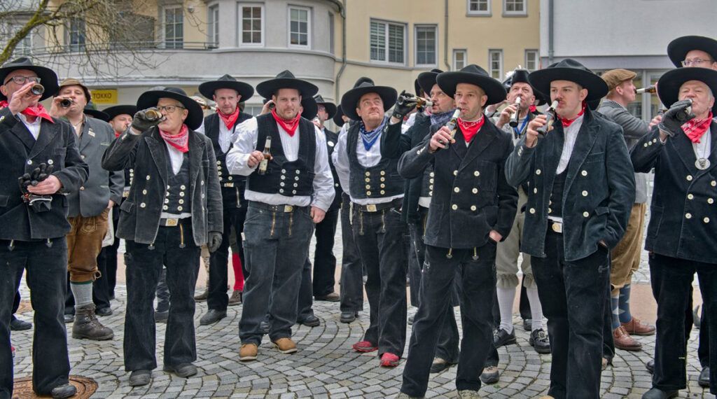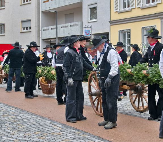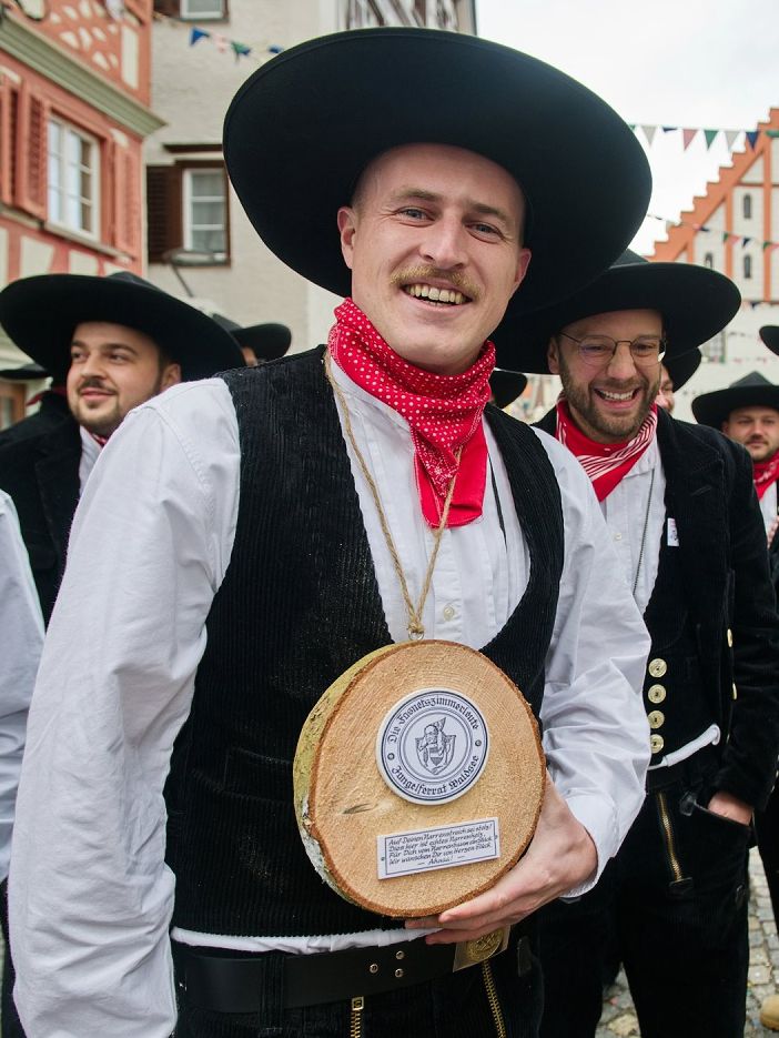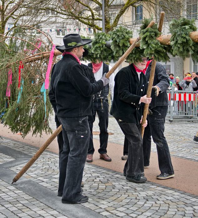 Bad Waldsee – Geometer und Zimmerleute des Jungelferrats haben den Narrenbaum am Morgen des Gumpigen mit vereinten Kräften auf die Hochstatt gebracht und dort unter lautstarken „Hau-Ruck, Hau-Ruck“-Rufen aufgestellt. Auf dem Weg zum Aufstellungsort gab es so manche kleine Spottrede zu hören. Unser Reporter Josef Hanss war dabei.