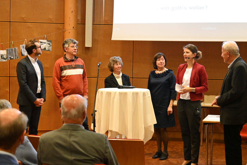 In einer lockeren Talkrunde mit Josef Schaut, Marlies Grötzinger, Elke Malke, Rüdiger Eppe und Patrick Appeltauer, den „Machern“ des Kalenders, spürte Regina Steinhauser dem Entstehen des Werkes nach. Josef Schaut erzählte von den Anfängen zusammen mit dem Fotografen Hiller aus Bad Saulgau. Die Mundart-Autorin Grötzinger gab einen Einblick in das Finden der Texte. „Das schwäbisch Sprechen ist einfach, das Schreiben schwieriger, aber wir treffen immer Mehrheitsentscheidungen.“