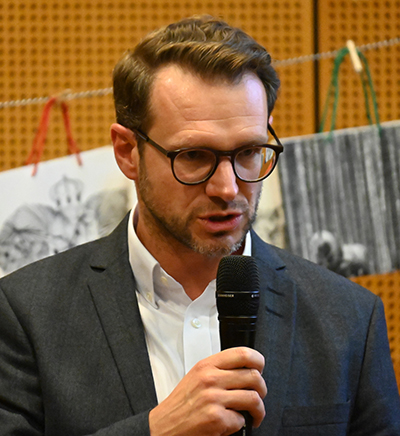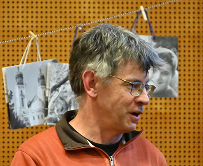 Mit der Vorstellung von „Lieblingskalenderbildern“, die die künstlerische Bandbreite der Kalenderblätter zum Ausdruck brachte und zwei humoristischen Einlagen von Stephan Schwarz (Bild), Hochschulpfarrer und Kirchenkabarettist, endete das offizielle Geburtstagsprogramm und die Bauernschule lud noch zum gemütlichen Zusammensein ein.