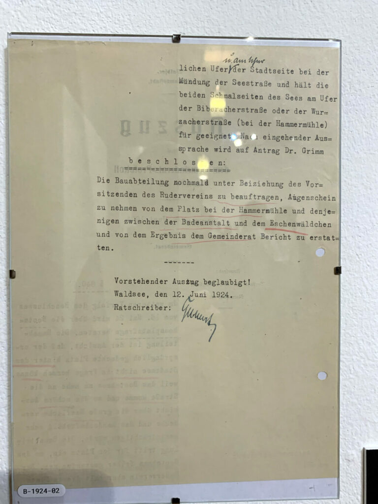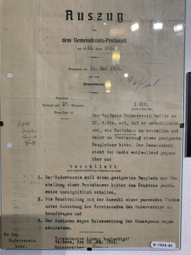 Gemeinderatsbeschluss zum Bootshausbau 1924.