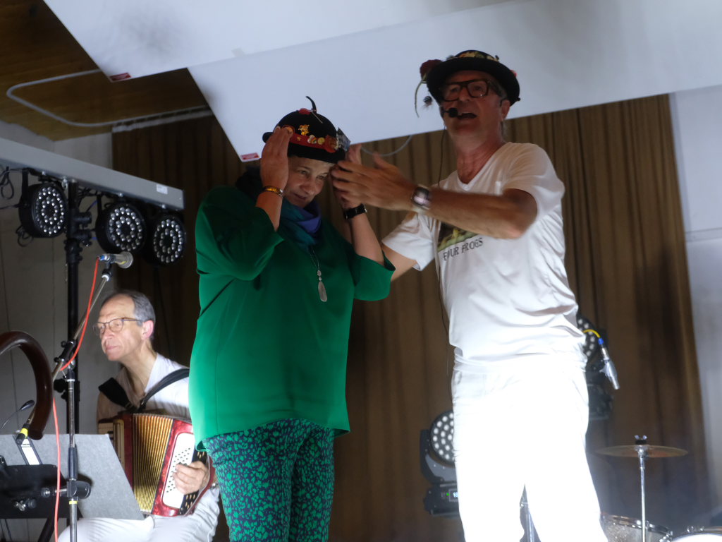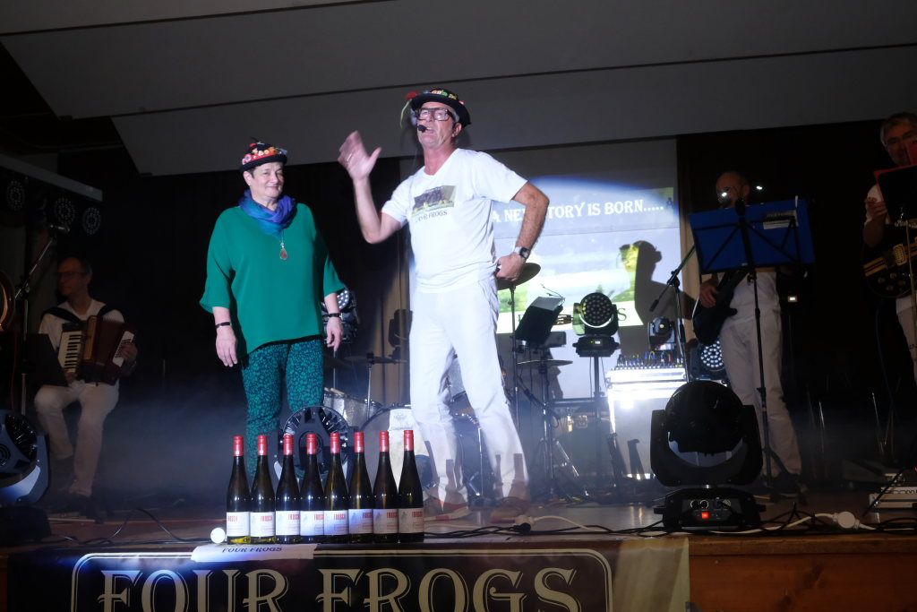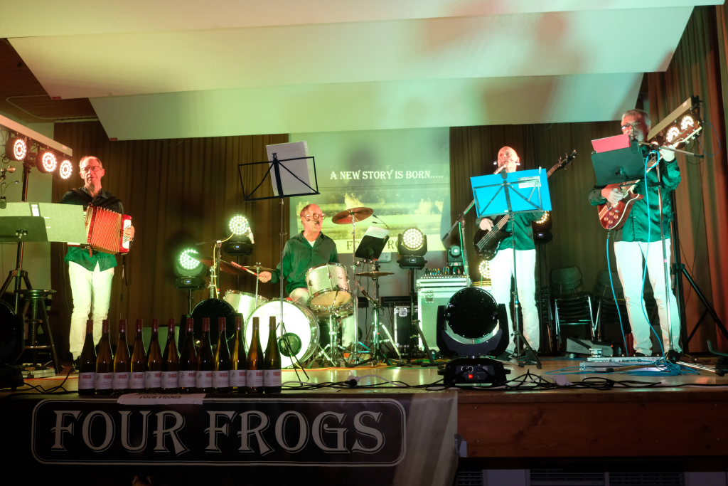 Natürlich durfte ein Lied zu der schwäbischen Spezialität, den Hergotts-Bscheißerla, besser bekannt unter „Maultascha“, nicht fehlen. Und auch die schwäbische Mentalität wurde in dem Lied „No it hudla“ besungen. Und weil Landwirte ja morgends früh raus müssen, nahmen die Four frogs auch darauf Rücksicht und beendeten – natürlich nicht ohne Zugabe – das Konzert schon vor Mitternacht, aber nicht ohne dass Robert Wespel, Vorstandsmitglied des VLF aus Kisslegg, sich bei den Musikern, den Organisatoren, vor allem aber bei Küche, Theke und den fleißigen Bedienungen bedankt hatte.