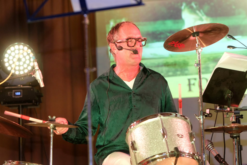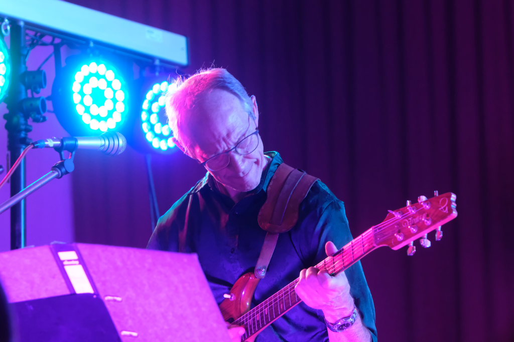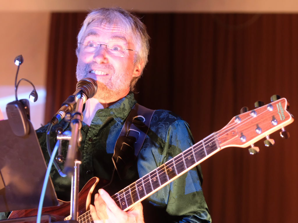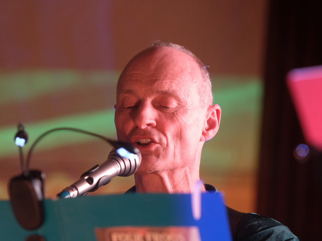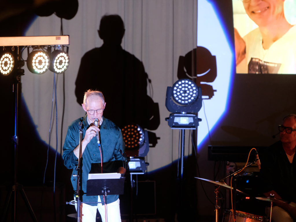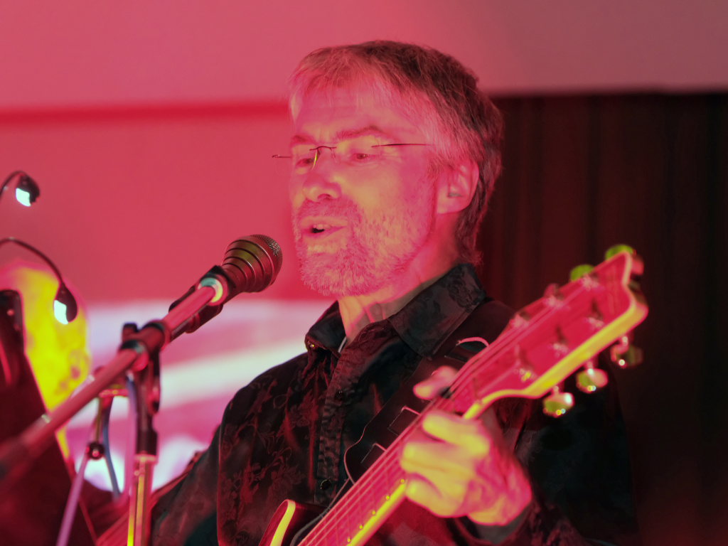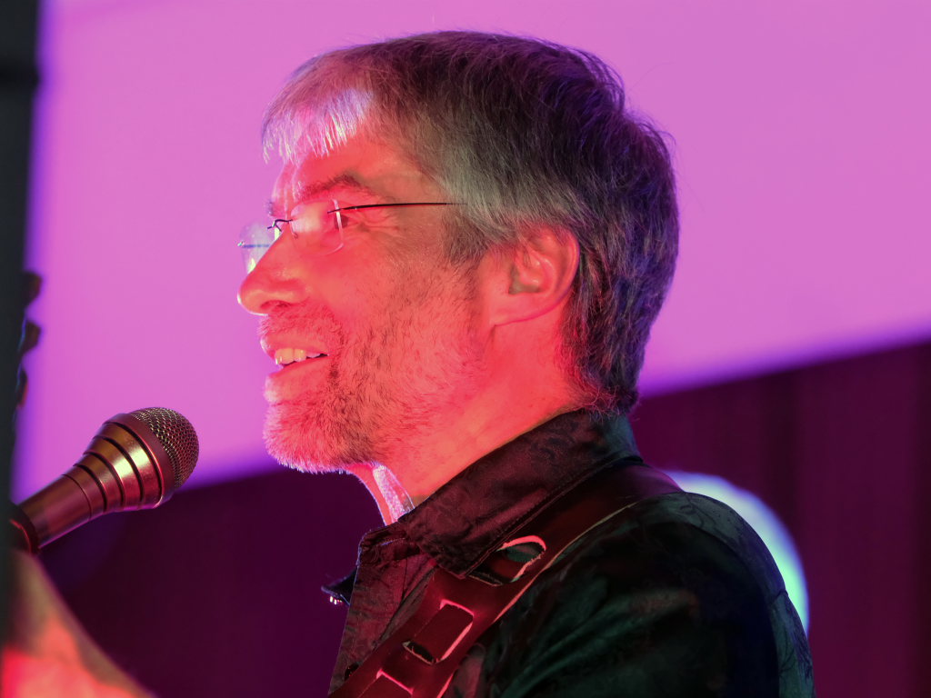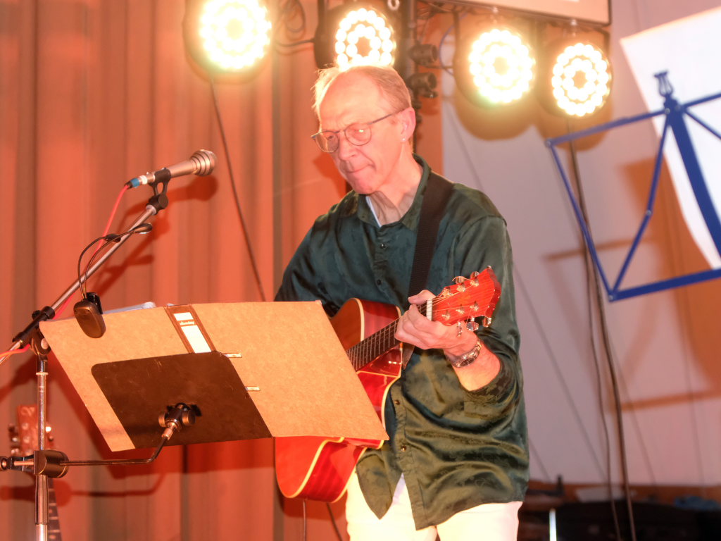 Doch nicht nur diese Geschichte erzählte der Mayerhofer dem Publikum im vollbesetzten Dorfstadel. Sondern auch die besondere Beziehung der Musiker zu der Örtlichkeit: Hier hatte ihre erste gemeinsame Formation Andromeda einst im Oktober 1982 (!) ihren Premierenauftritt. Dabei zeigen sich die “Four Frogs” so flexibel, dass in ihrem Repertoire individuell angepasste Liedtexte nach Wünschen des Veranstalters möglich sind. So auch in Ziegelbach: Bei einem Besuch bei Familie Bohner zeigte sich Gebe Mayerhofer tief beeindruckt von der vollautomatischen Melkmaschine, weswegen er diese Eindrücke in einem Lied zum Ausdruck brachte.