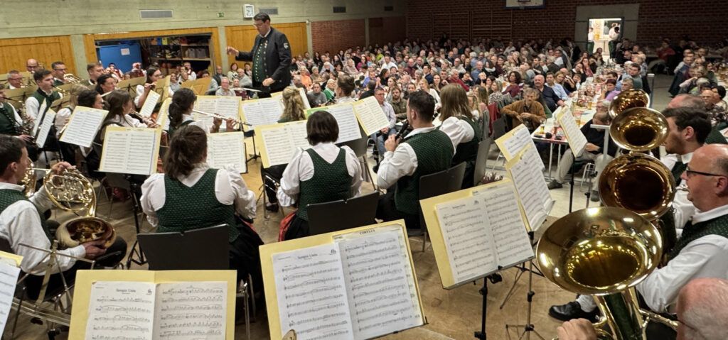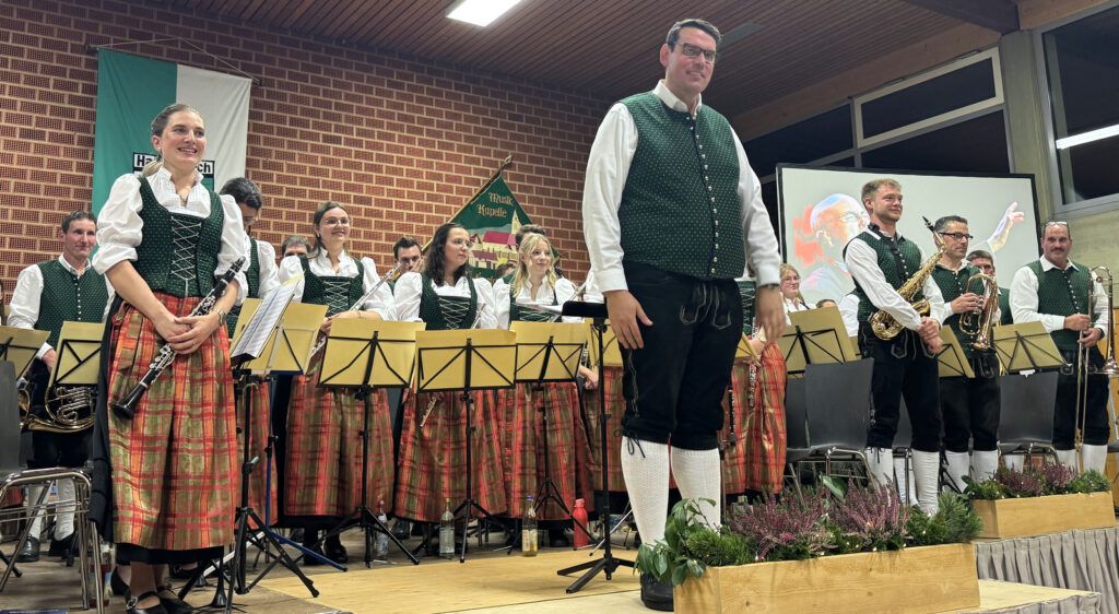 Haisterkirch – Am 15. November gab es in der Gemeindehalle in Haisterkirch ein großes Doppelkonzert. Es spielten die Musikvereine aus Haisterkirch und aus Herlazhofen auf. Nicht nur Daniel Maucher vom Vorstandsteam des Musikvereins Haisterkirch, sondern auch Ilona Rauh vom Vorstandstrio des Musikvereins Herlazhofen zeigte sich höchst erfreut über die große Zuhörerkulisse in der herbstlich dekorierten Halle. Kein Stuhl war frei geblieben. Die beiden begrüßten die große Gästeschar, zu denen die Ortsvorsteher Matthias Covic (Haisterkirch) und Sven Stöckle (Herlazhofen) wie auch die langjährige Haisterkircher Ortsvorsteherin Rosa Eisele gehörten. Namentlich begrüßt wurden zudem die Geschäftsführerin des Blasmusikkreisverbandes Ravensburg Karin Michele sowie Rolf Heber (KGR-Vorsitzender) und auch die früheren Dirigenten Walter Messeck und Florian Hubl, je mit Gattinnen. Ein besonderer Willkommensgruß galt einer Gästegruppe aus Borkum.