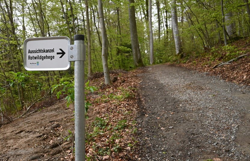 Hier lang: Eine Beschilderung weist den Weg zur neuen Aussichtsplattform.