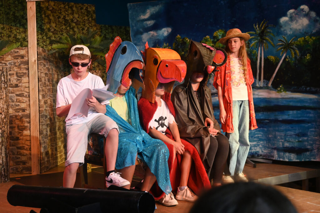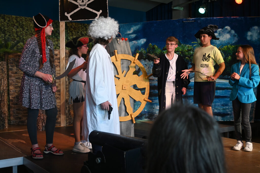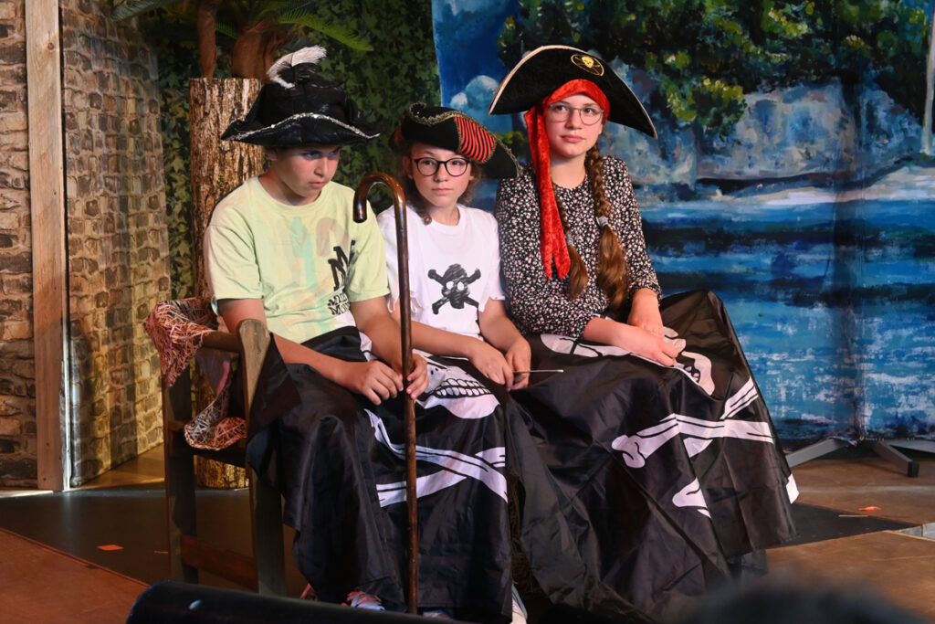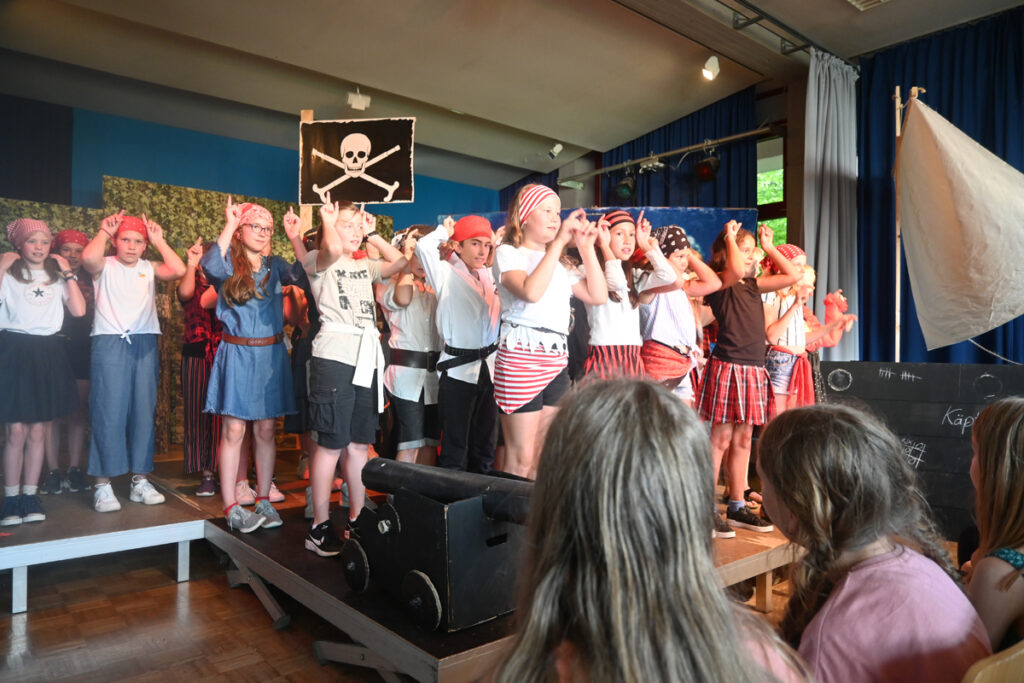 Volkwein und Greinacher setzten sich, das ist schon eine ganzer Weile her, zusammen und stellten ein Musical nach Motiven von Stevensons „Schatzinsel“ zusammen. Volkwein dichtete, Greinacher komponierte. Und jetzt muss man mal eine Lanze brechen für die Pädagogen, die oft geschmäht werden wegen ihres „Halbtags-Jobs“ und den vielen Ferien. Wie viele Stunden ihrer Freizeit sie in dieses Projekt investierten, haben sie sicher nicht gezählt. Sie wollten einfach was für die Kinder ihrer Schule, ihres Chors und ihrer Theater AG machen. Das allein ist schon Beifall wert.