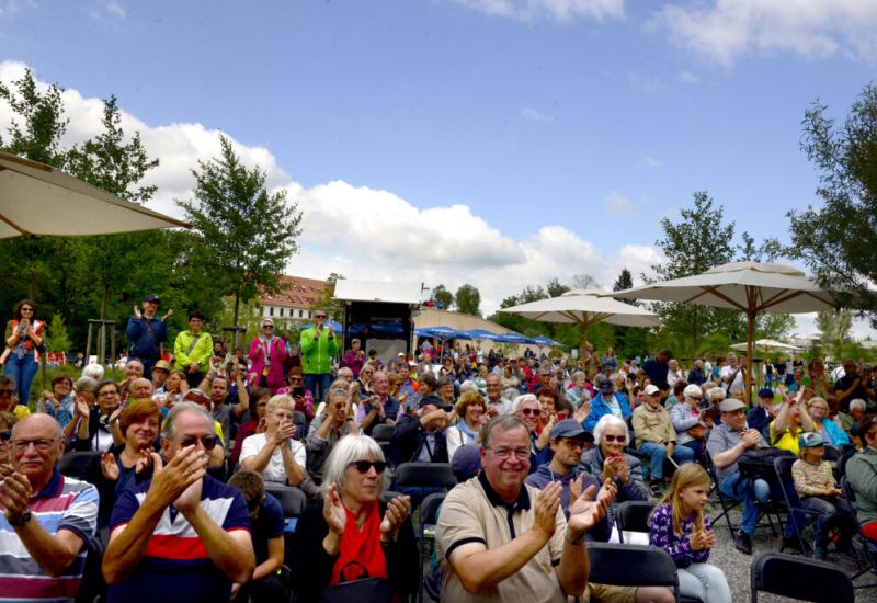 Um 12.00 Uhr begrüßte Oberbürgermeister Matthias Henne die Besucher auf der Argenbühne. Anschließend folgten verschiedene musikalische Darbietungen der Stadtkapelle Bad Waldsee, des Singkreises Solidarische Gemeinde Reute-Gaisbeuren und des Fanfarenzugs Bad Waldsee. Als musikalisches Highlight und krönenden Abschluss boten die Highland Pipes and Drums of Waldsee traditionelle schottische Musik. Unter den begeisterten Zuhörern war ein Ehepaar aus der Nähe von Wangen. Sie hatten das gesamte Programm von 12.00 Uhr bis 17.00 Uhr voll und ganz genossen und applaudierten nicht nur mit ganzer Kraft, sie waren sich auch sicher, Bad Waldsee spätestens zum Altstadt- und Seenachtfest am 27. oder 28. Juli zu besuchen. Fasziniert war das Paar auch von Moderator Barny Bitterwolf: „So einen witzigen und humorvollen Moderator haben wir noch nie erlebt – Hut ab.“