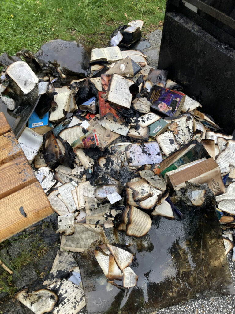 Ein öffentlicher Bücherschrank, Symbol für Bildung, Vertrauen und nachbarschaftliches Miteinander, wurde angezündet – samt Inhalt. Bücher, die Menschen gespendet hatten, um anderen eine Freude zu machen, gingen in Flammen auf. Dazu eine Sitzbank im See, zerschlagene Scheiben im Clubhaus des Rudervereins – als sei Verwüstung ein Sport.