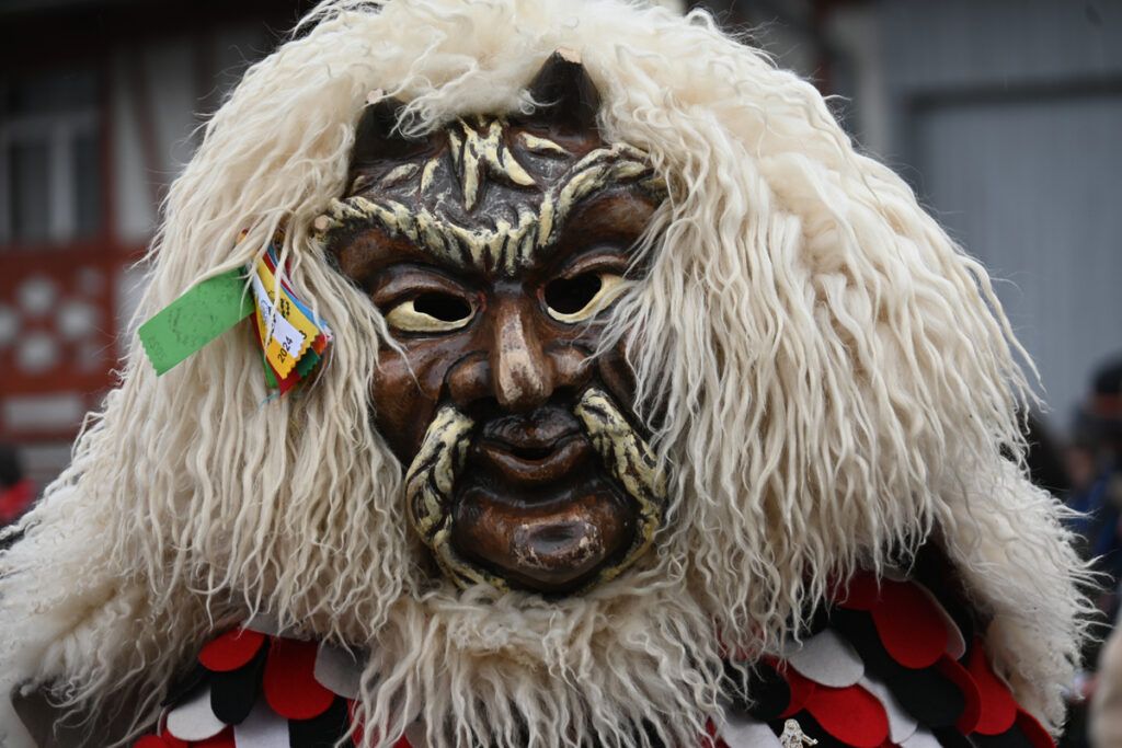 Bus um Bus rollte an. Rund um das Kloster waren alle Plätze besetzt und die Autofahrer taten gut daran, möglichst weit vom Festgeschehen einen Platz zu suchen. Auf den Aufstellungsplätzen fieberten die Hästräger dem Umzug entgegen. Punkt 13.30 Uhr eröffnete der Büttel zusammen mit seinen Kanonieren und dem Reutener Narrensamen den Festumzug. Manch Mäschkerle und Zuschauer schaute mit sorgenvoller Miene an den grauen Himmel, denn immer wieder kam ein kleines nasses Tröpfchen vom Himmel geflogen. Aber Petrus hatte ein Einsehen und die gute Beziehung des Klosters in die himmlischen Gefilde trugen sicher auch das Ihrige bei und sorgten für einen, zumindest äußerlich, trockenen Festverlauf.