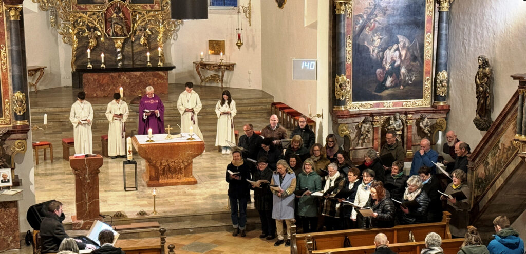 Haisterkirch – Pfarrer Fernando Marcucci von der Seelsorgeeinheit Zocklerland hat ein Versprechen wahr gemacht und ist jetzt am letzten Februarsonntag 2024 mit dem Chor „Kyriake“, ebenfalls aus der Seelsorgeeinheit Zocklerland, in den Haistergau gereist.