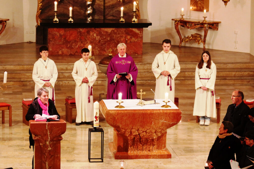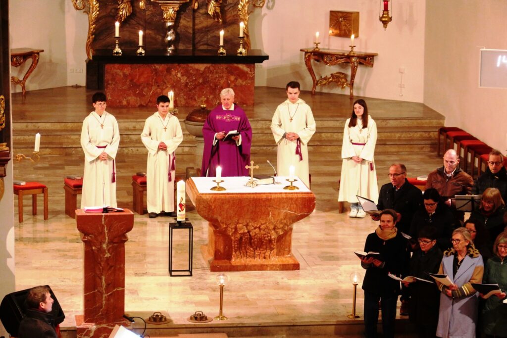 Pfarrer Marcucci verstand es mit überzeugenden Worten, die Aussagen des Sonntagsevangeliums (Markus 9, 3-10) lebensnah auszulegen Die Fürbitten, vorgetragen von Lektor Timm Scheifele, hatten aktuellen Bezug zur gegenwärtigen Situation in aller Welt.