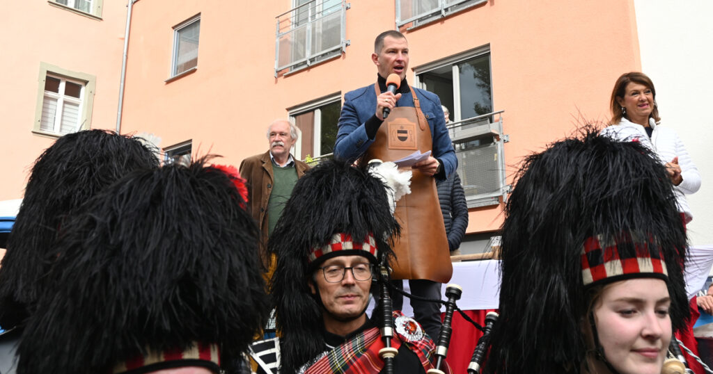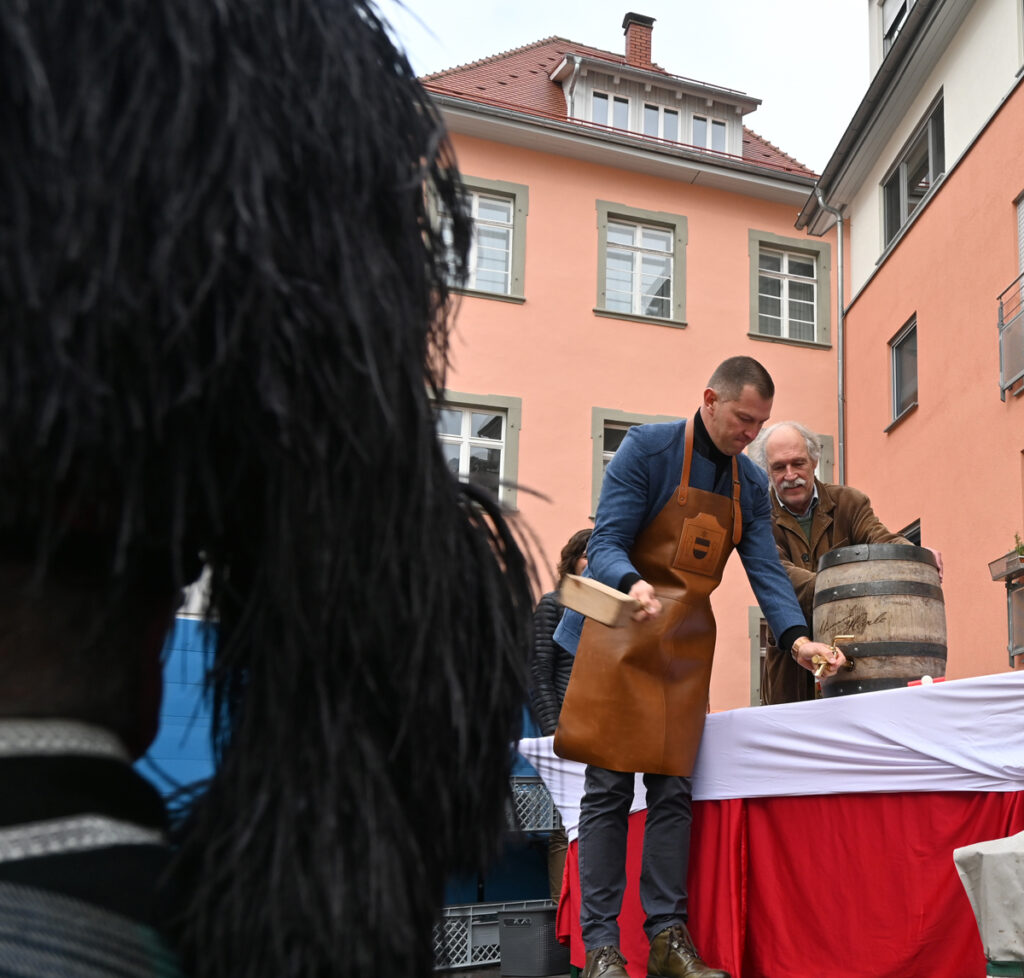 Gegenüber den letzten Jahren gab es einen neuen Bierlieferanten für den Fassanstich. Statt vom Steinacher Hausbräu kam das Bier von Härle aus Leutkirch. Eine gute Gelegenheit, den neuen „Hirschwirt“ vorzustellen, Gottfried Härle.