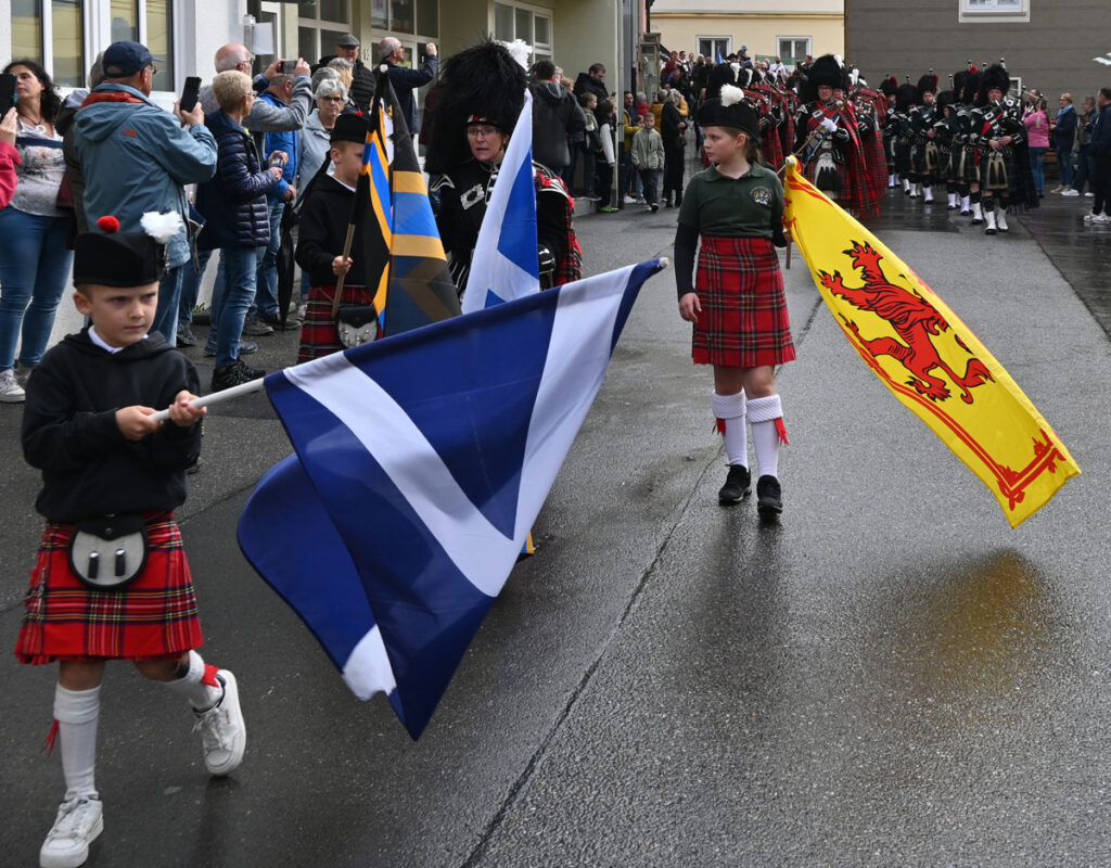 Vorneweg die Jugend: Die Highland Pipes and Drums marschieren ein.
