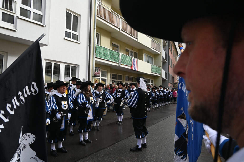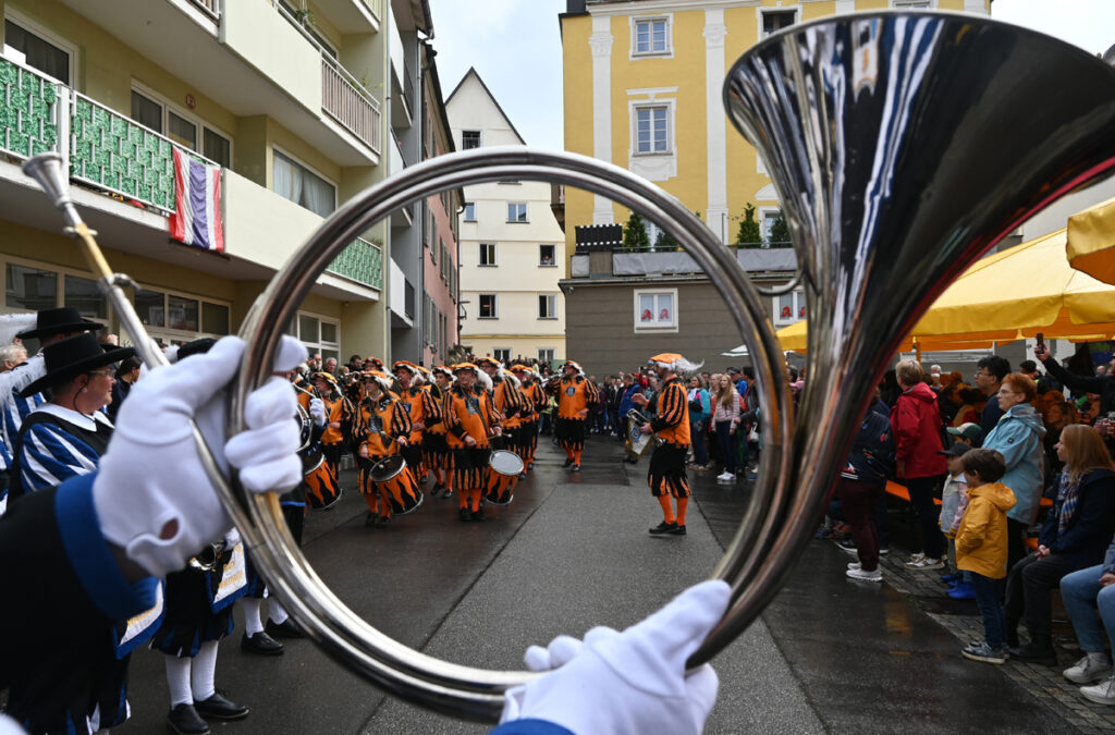 Den Abschluss beim Einzug macht der Fanfarenzug aus Zwiefalten (wo Matthias Henne früher Bürgermeister war).