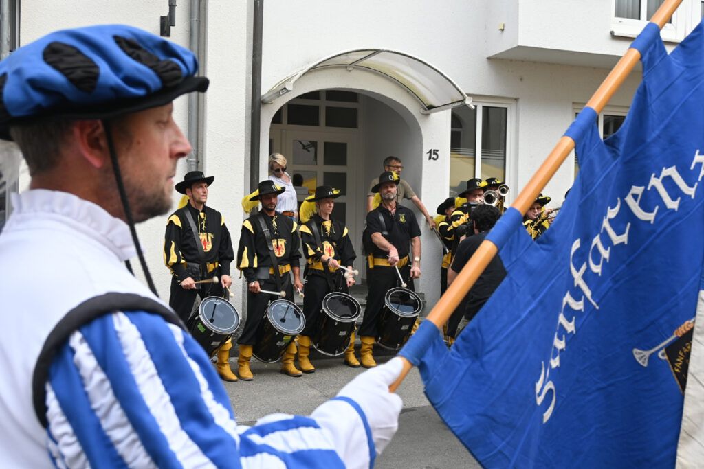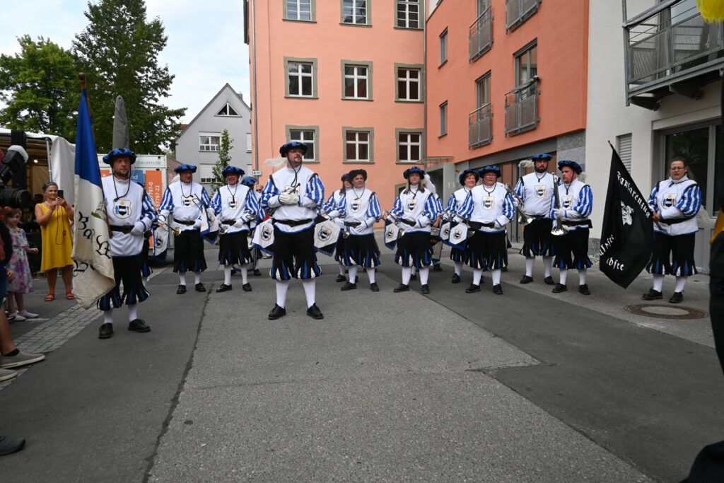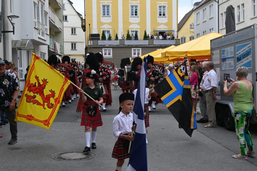 Mit markigen Trommel- und Fanfaren-Klängen und Dudelsackgeschmetter eröffneten der Bad Waldseer und der Bad Wurzacher Fanfarenzug, gefolgt von der Highland Pipes and Drums, das Fest. Es macht immer mächtig Eindruck, wenn die Züge in Formation marschieren, exakte Drehungen vollführen, alles gut einstudiert. Eine besondere Augenweide, die schwäbischen Schotten mit ihren Bärenfellmützen, schwarzen Sakkos und bunt karierten Röcken, Und immer wieder taucht dabei in der Damenwelt die Frage auf, was die Kerls wohl drunter tragen.