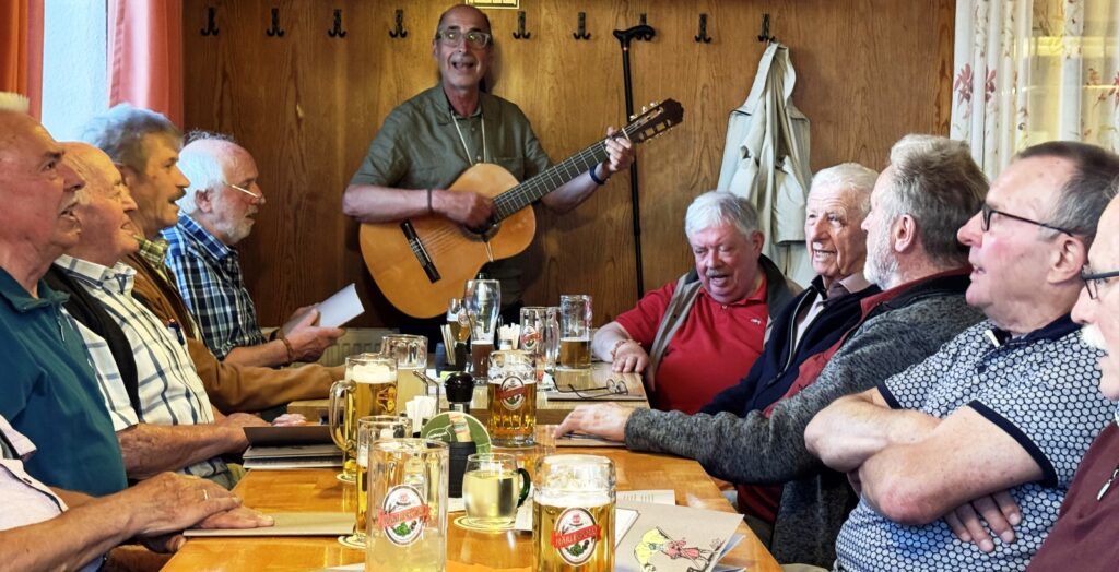 Haisterkirch – Zweimal im Jahr treffen sich in lockerer Runde ehemalige und teilweise noch aktive Sänger des Männerchors Haisterkirch im Gasthaus „Burgstock“ (Hittisweiler). Die Anregung zu diesen Treffen kamen von Wolfgang Gustke, der den Männerchor auch immer mit seiner dichterischen Kunst beglückt.