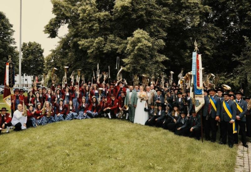 Aber nicht nur das: Annalenas Musikkapelle Bergatreute begleitete das Hochzeitspaar zur Kirche und Emils Musikapelle Molpertshaus gestaltete den Gottesdienst. Bei der anschließenden Gratulation mit Sektempfang spielten beide Kapelle auf. „Oifach schee wars.“