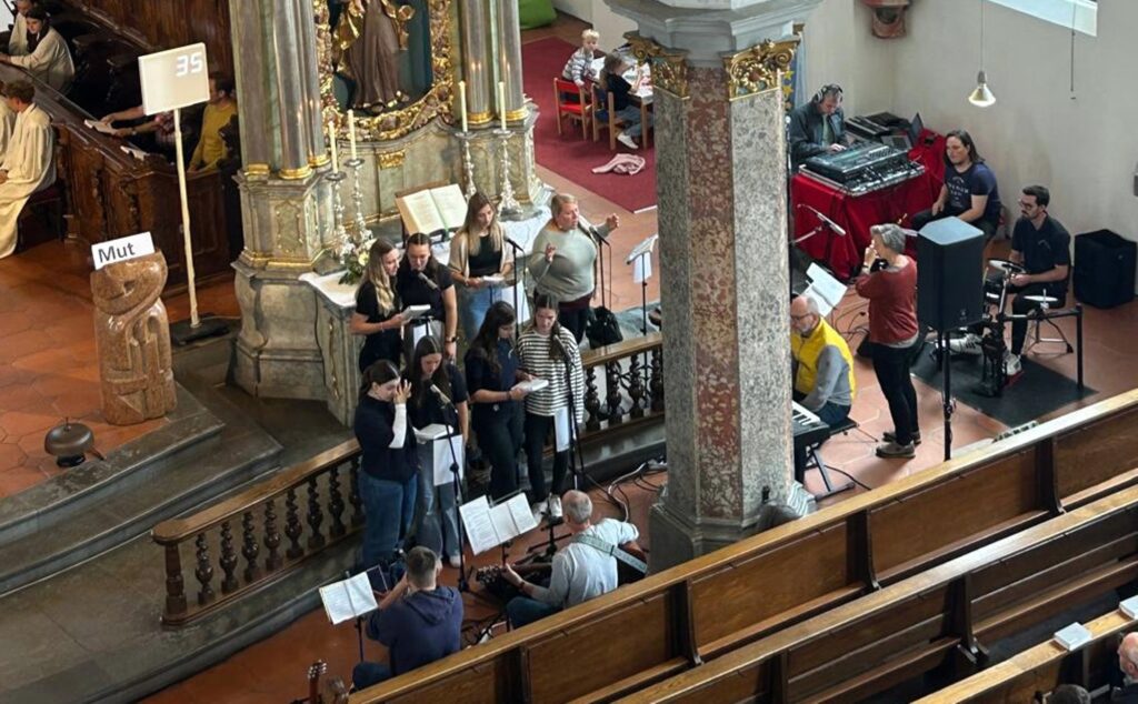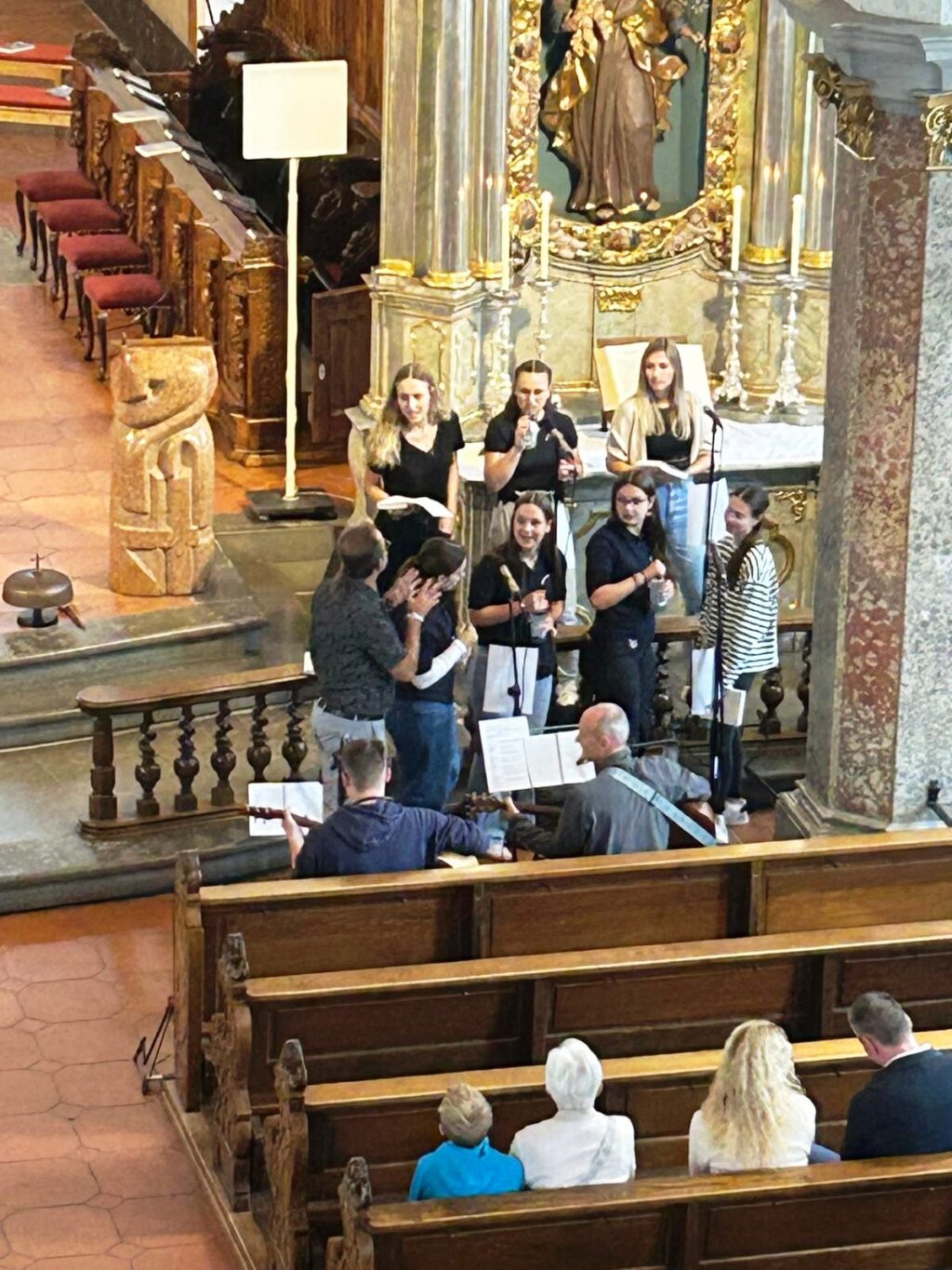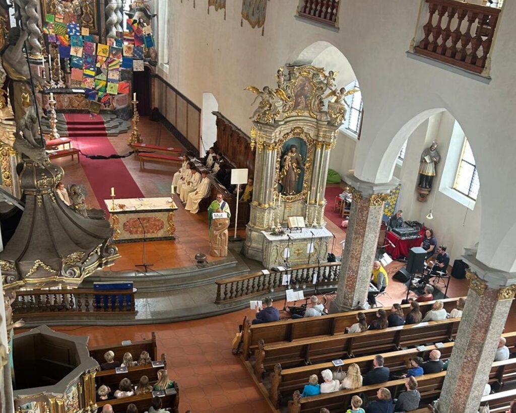Ersatzweise fand die Ministrantenaufnahme in der Pfarrkirche St. Peter statt. Pfarrer Stefan Werner freute sich sehr darüber, dass nicht nur viele Jugendliche, sondern auch Erwachsene der Eucharistiefeier in der Kirche St. Peter beiwohnten. Diese wurde lebendig gestaltet von einer Chorgemeinschaft mit Instrumentalisten, Sängerinnen und Sängern, die am Schluss viel Beifall ernteten, wie auch die neuen und alten Minis und deren Leiterrunde. Deren Engagement lobte Pfarrer Stefan Werner ganz besonders.