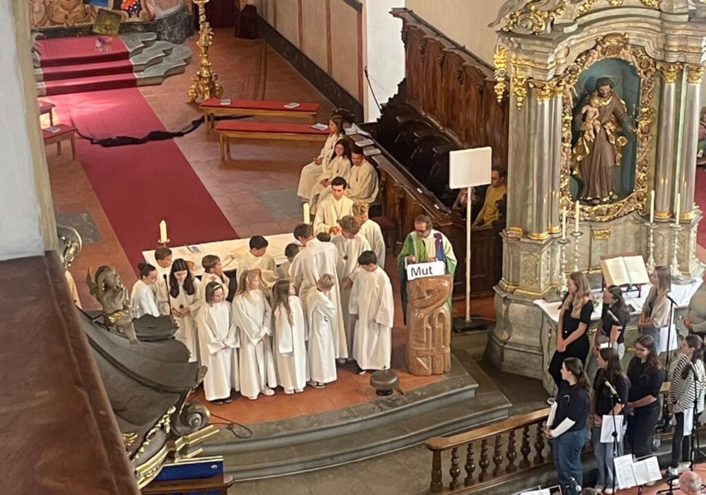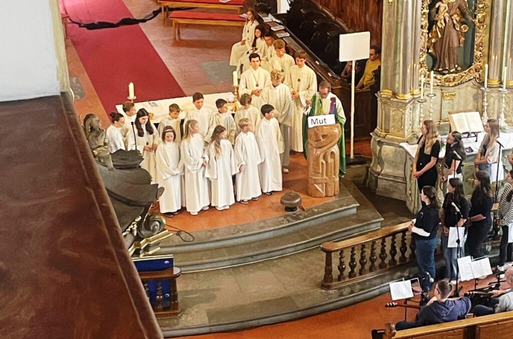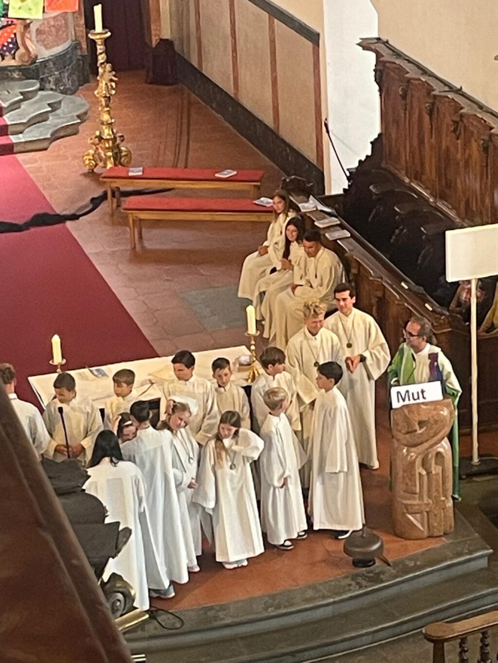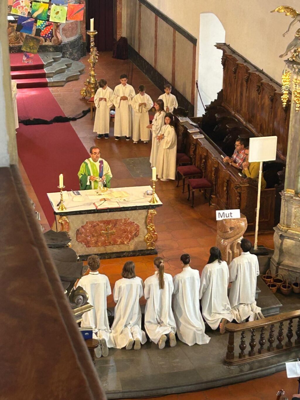 Bad Waldsee – Am letzten Sonntag im Juli hat die eh schon richtig große Schar der Ministrantinnen und Ministranten von St. Peter Bad Waldsee erheblichen Zuwachs bekommen. Vier Mädchen und sieben Buben schlossen sich den Bad Waldseer Minis an.