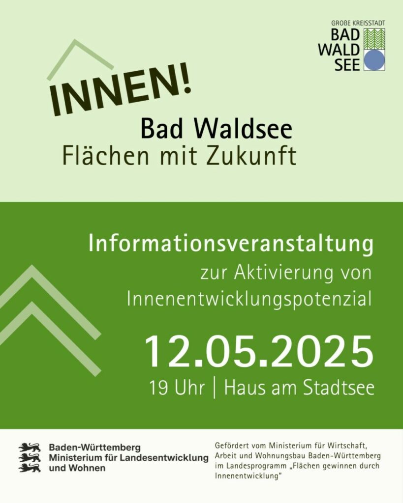„Flächen mit Zukunft – Bad Waldsee macht mehr daraus!“ am Montag, 12. Mai 2025, um 19.00 Uhr im Haus am Stadtsee.